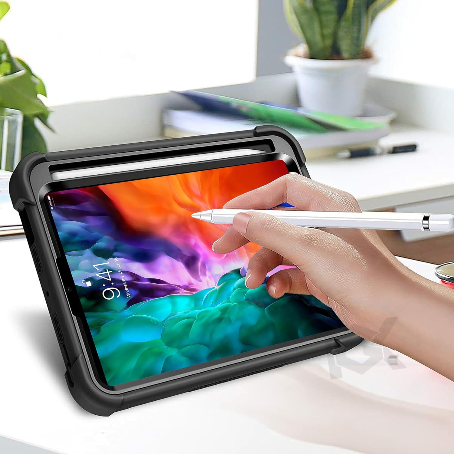 [Handy kickstand]: The functional built-in kickstand is a great bonus when you are watching a movie, facetime, or just need to have the iPad Pro 2020 (4th Generation) 12.9 inch/app in a landscape mode. And all the button features and cutouts are where they should be, leaving plenty of space around the cutouts for easy connection.
