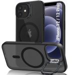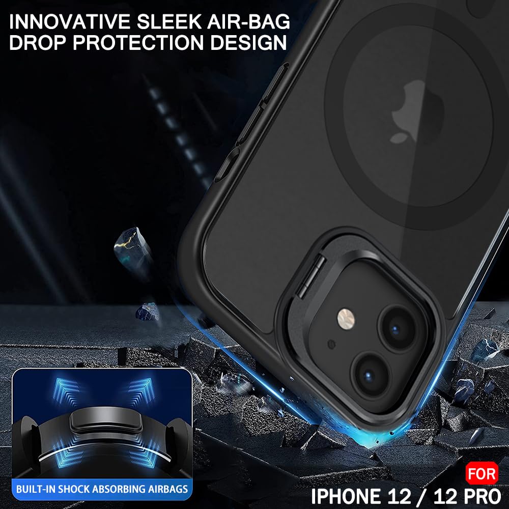 TheGiftKart Hybrid Back Cover Case for iPhone 12/12 Pro Compatible with MagSafe | Built-in Stand | Shockproof Hard Case Cover for iPhone 12/12 Pro (PC & TPU, Frosted Matte Back, Black Sides)