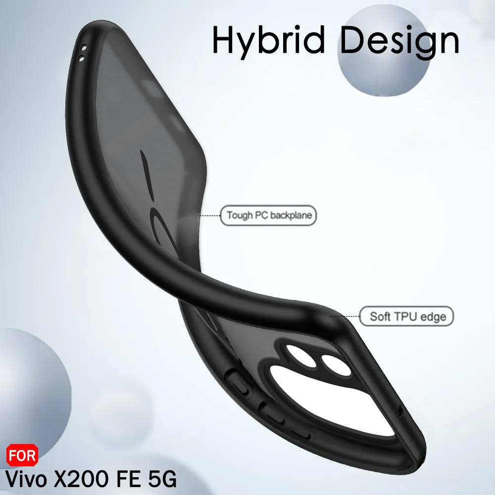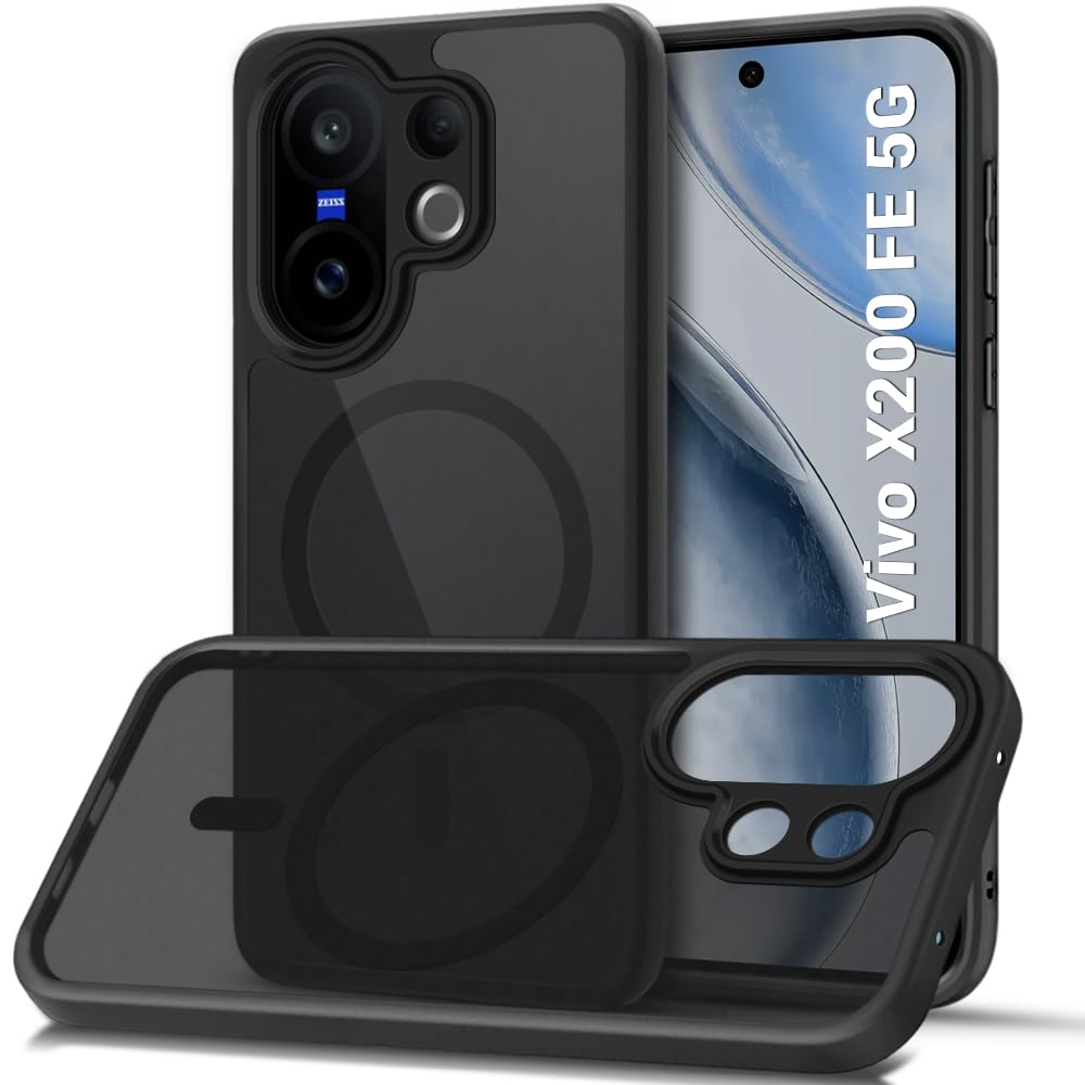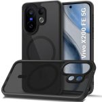 TheGiftKart Hybrid Shockproof Back Cover Case for Vivo X200 FE 5G Compatible with MagSafe | Hard Back Cover Case for Vivo X200 FE 5G (PC & TPU, Translucent Smoke Matte Back, Black Sides)