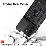 TheGiftKart Tough Armor Bumper Back Cover Case for Samsung Galaxy M17 5G / A17 5G / F17 5G | Sliding Camera Cover, Kickstand & Ring Holder | 360 Degree Protection Back Cover Case (PC & TPU, Black)