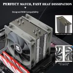 [Product specification] Thermalright AS120 V2 PLUS; CPU Cooler dimensions: 120(L)x98(W)x154(H)mm (4.72×3.86x 6.06 inch); heat sink material: aluminum, CPU cooler is equipped with metal fasteners of Intel & AMD platform to achieve better installation,Specially designed and tested, the heat sink does not obstruct the memory stick.Dual PWM fans for better CPU cooling.
