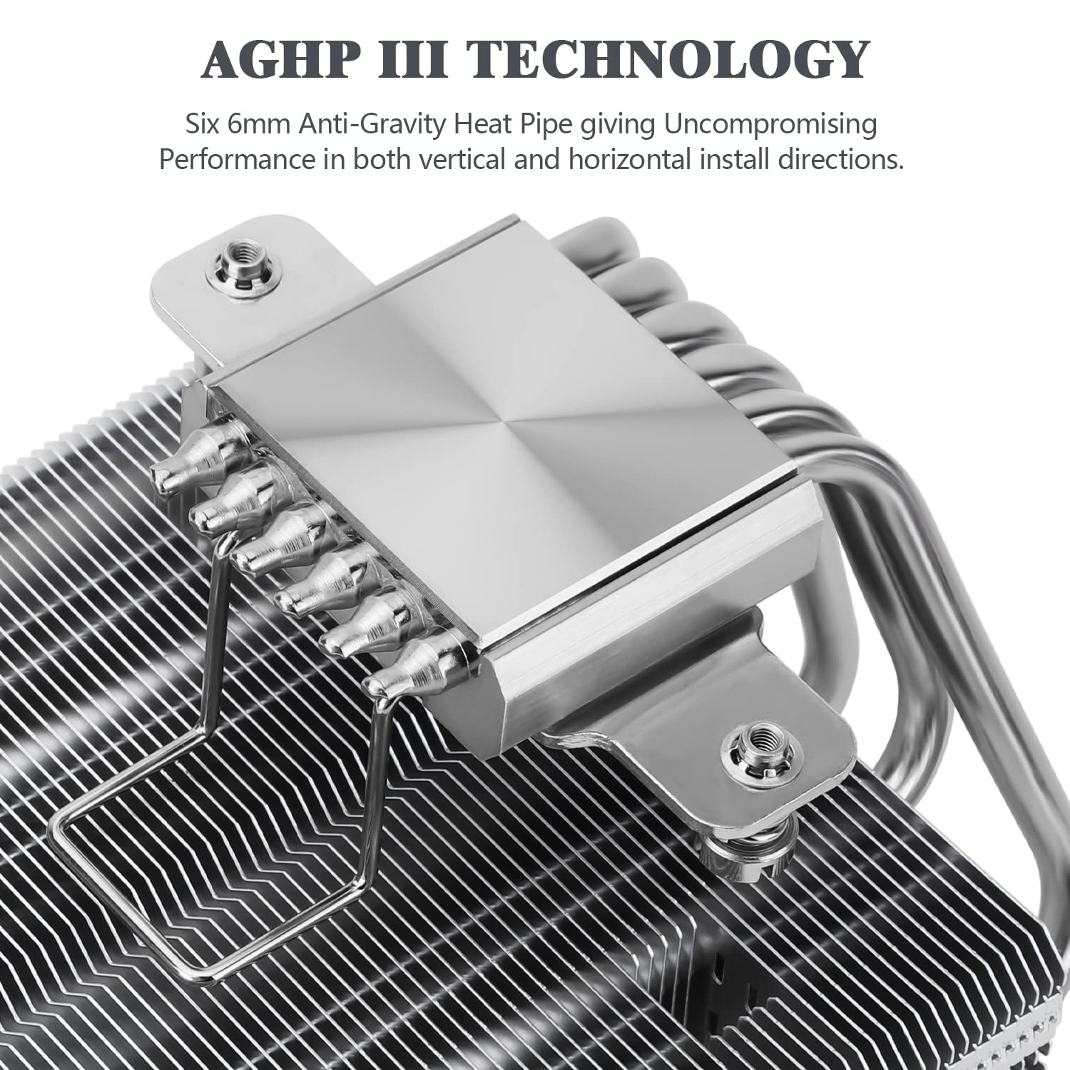 【AGHP-Technik】 6x6mm Heatpipes wenden AGHP 3.0-Technik an, lösen Sie den inversen Schwerkrafteffekt, der durch vertikale / horizontale Ausrichtung verursacht wird, Bis zu 20000 Stunden industrielle Lebensdauer, S-FDB v2.0-Lager sorgen für eine lange Lebensdauer von Luftkühlerkühler-Kühlern. UL Klasse A Sicherheitsisolierung minderwertiges, industrietaugliches PBT+PC-Material, um hochwertige Produkte für Sie zu schaffen. Die Höhe beträgt 100mm, geeignet für kleine / mittelgroße Computergehäuse.