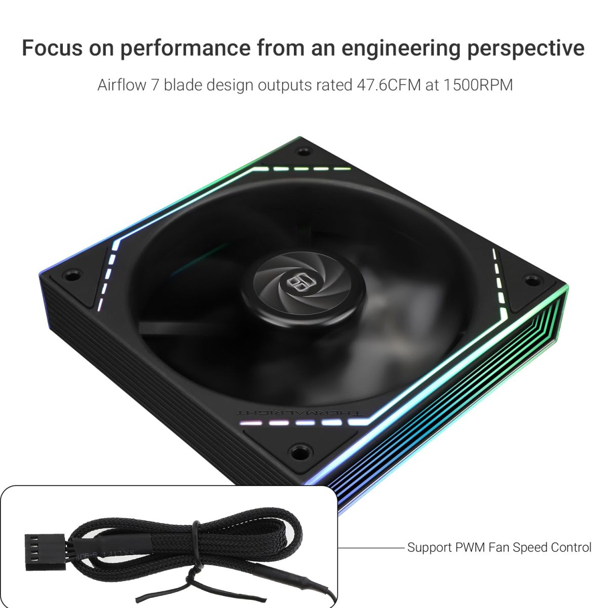 【Detail Optimization】The case fan is made of industrial-grade PBT+PC material, with a cable up to 55CM long, and supports PWM/ARGB series control of the computer fan. (Note: No more than 5 ARGB fans of the same specification cannot be connected in series).