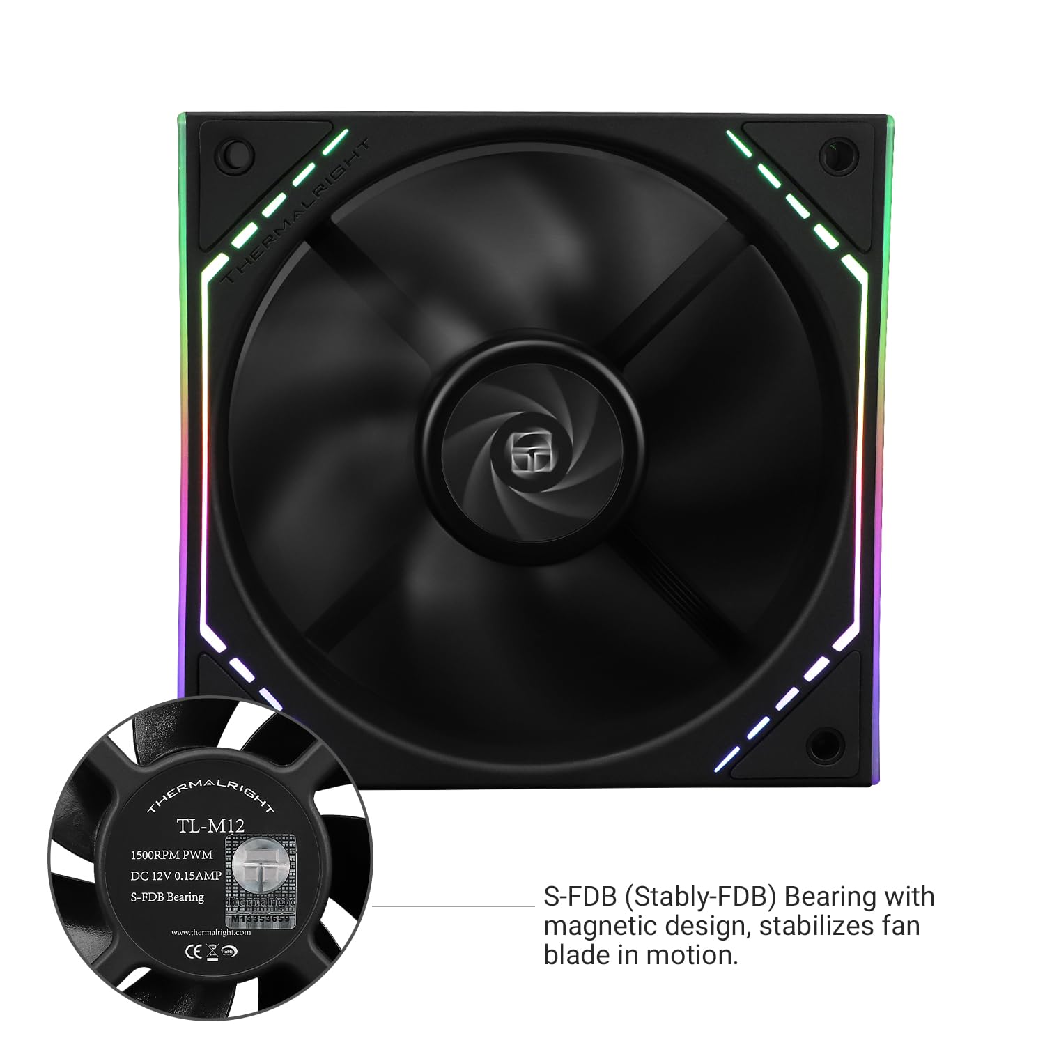 Thermalrlght TL-M12 Case Fan 120mm ARGB CPU Cooler Fan Comes with ARGB Mirror Light Effect,PC PWM Silent Fan with 1500RPM Speed