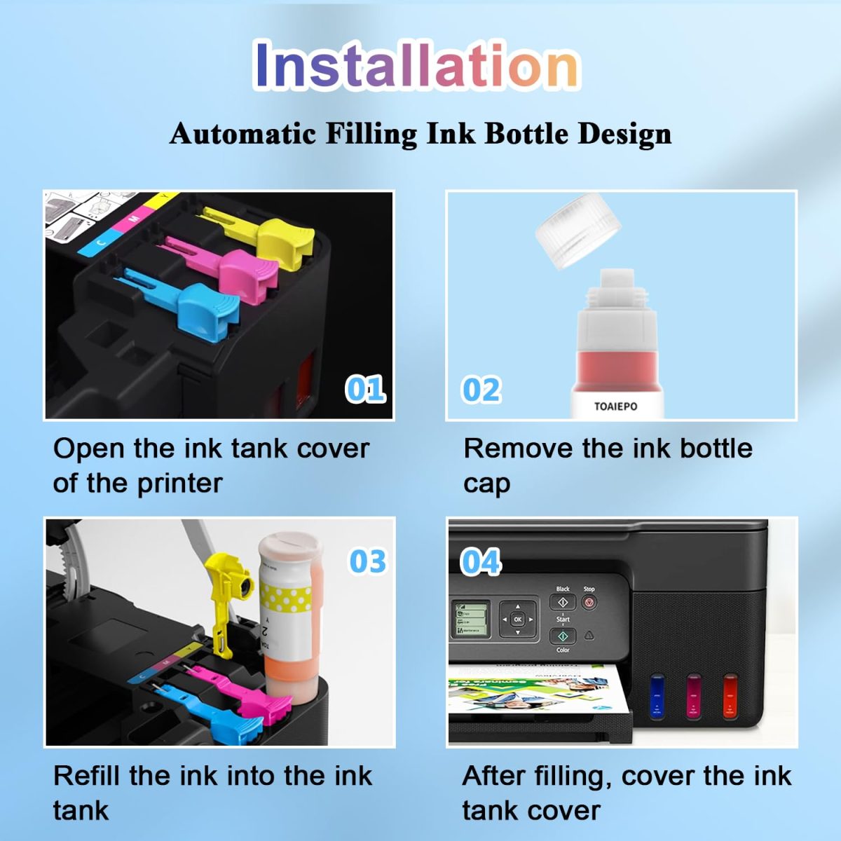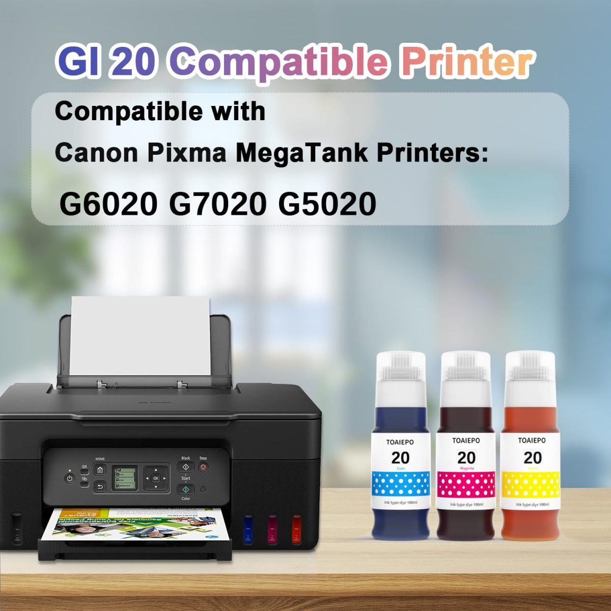 TOAIEPO GI20 Refill Ink Bottle Compatible Printer:PIXMA G5020 G6020 G7020 MegaTank Printers