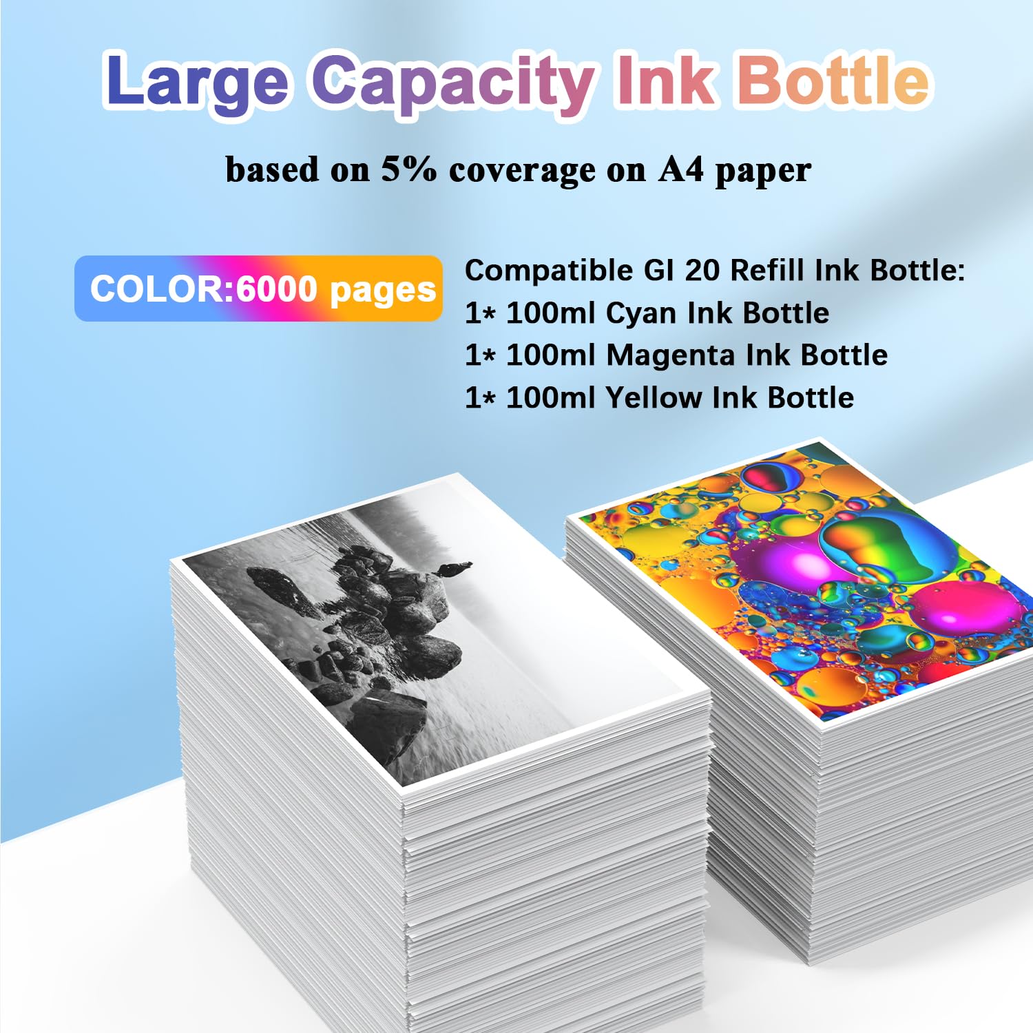GI20 Ink Bottles replacement work with PIXMA G5020 G6020 G7020 MegaTank Printers