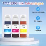 Be the first to review “TOAIEPO GI20 Ink Bottle Replacement for GI-20 Work with PIXMA G6020 G5020 G7020,(Cyan Magenta Yellow)”