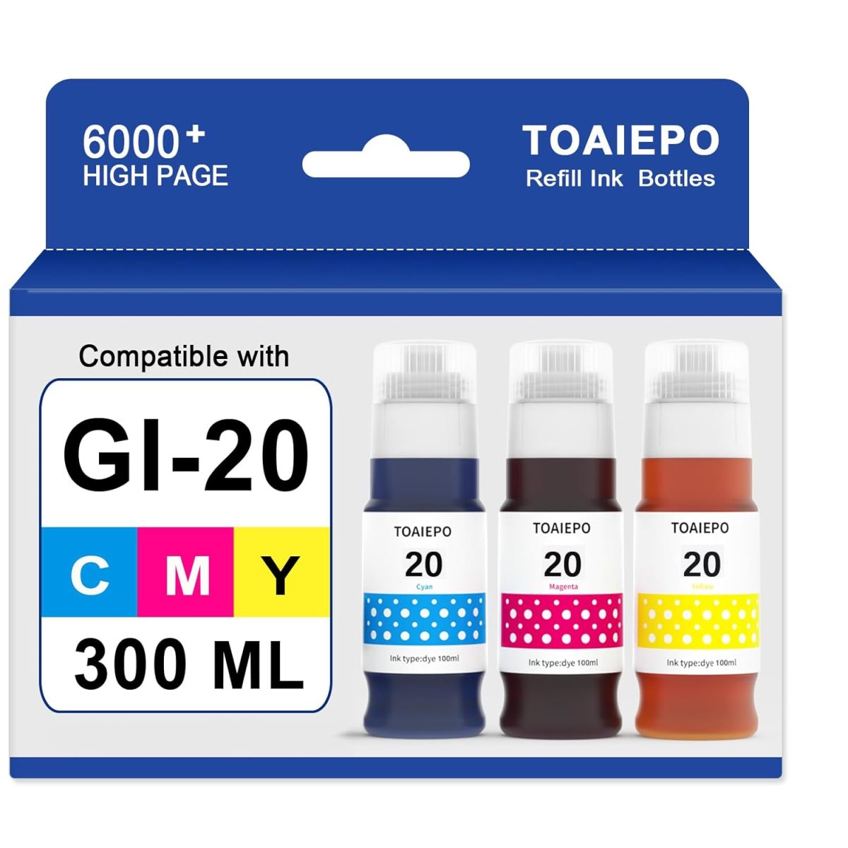 TOAIEPO GI20 Ink Bottle Replacement for GI-20 Work with PIXMA G6020 G5020 G7020,(Cyan Magenta Yellow)