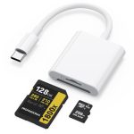 【USB C SD Card Reader】This SD Card compatible with USB-C devices, for Samsung, iPhone 16/15 Pro Max Plus, for Samsung Galaxy S25/S24/S23, MacBook Pro, MacBook, iPad Pro(USB C Port), Lenovo Laptop, and more. This sd card reader supports 2 different ports: SD/Micro SD (TF card). Note: It cannot display the content of the micro SD card and SD card at the same time.