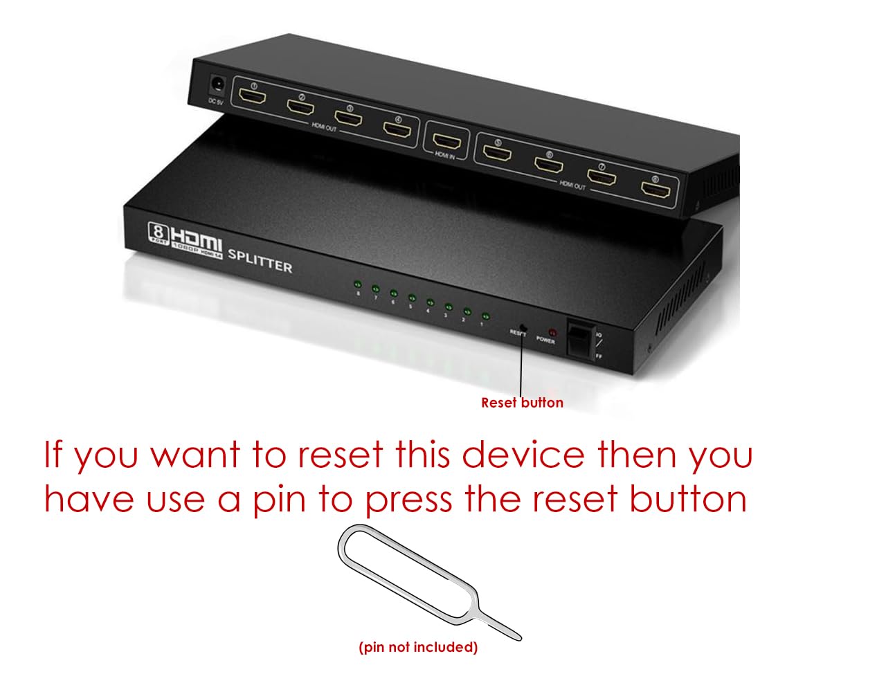 HDMI 1X8 Splitter : Hdmi splitter 1 in 8 out distributes HDMI Audio and video signal from one single source to eight different HDMI displays simultaneously.Audio and Video lossless transmissionUp to 4K 2160P : Resolution Support Ultra HD 3840 x 2160 Resolution & including 3D, 2k@30hz, 1080p @30Hz, 1080p @60Hz. You can share the most luxurious video and Audio with your friends or families.HDMI version 1.4 : HDMI version 1.4 : This version 1.4 HDMI splitter compatible with HDMI 1.4, 1.3 and 1.2 Version.(note this splitter does not support hdmi 2.0 hdcp 2.2)Over current Protection : Over current protection, stable performance,Stack connection, expand to share more.Wide application : Support most HDMI device computer, Xbox 360, Xbox one, PS3, Pro, Blu-ray DVD player, satellite receiver, route Roku, Chromecast, PC HDTV projectors