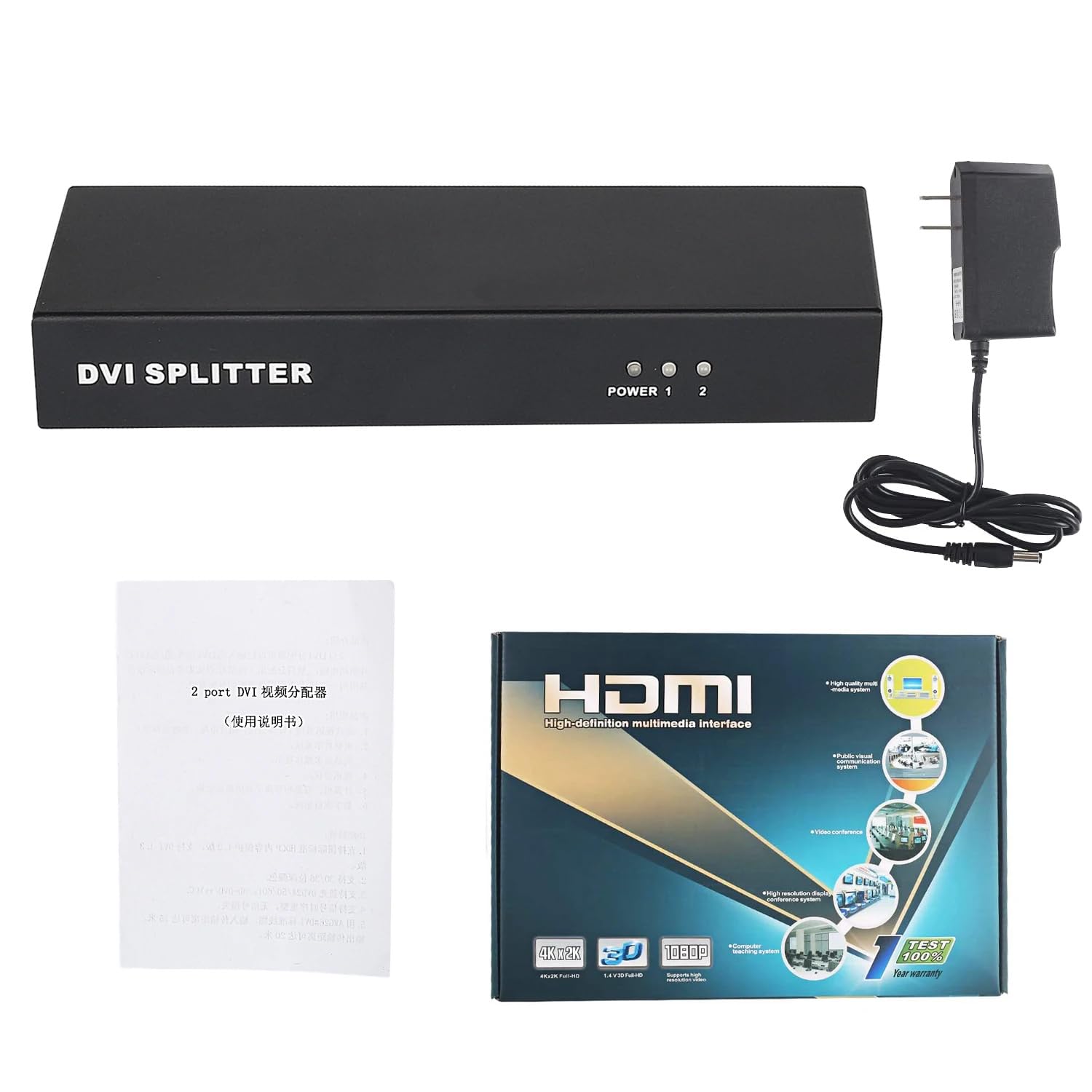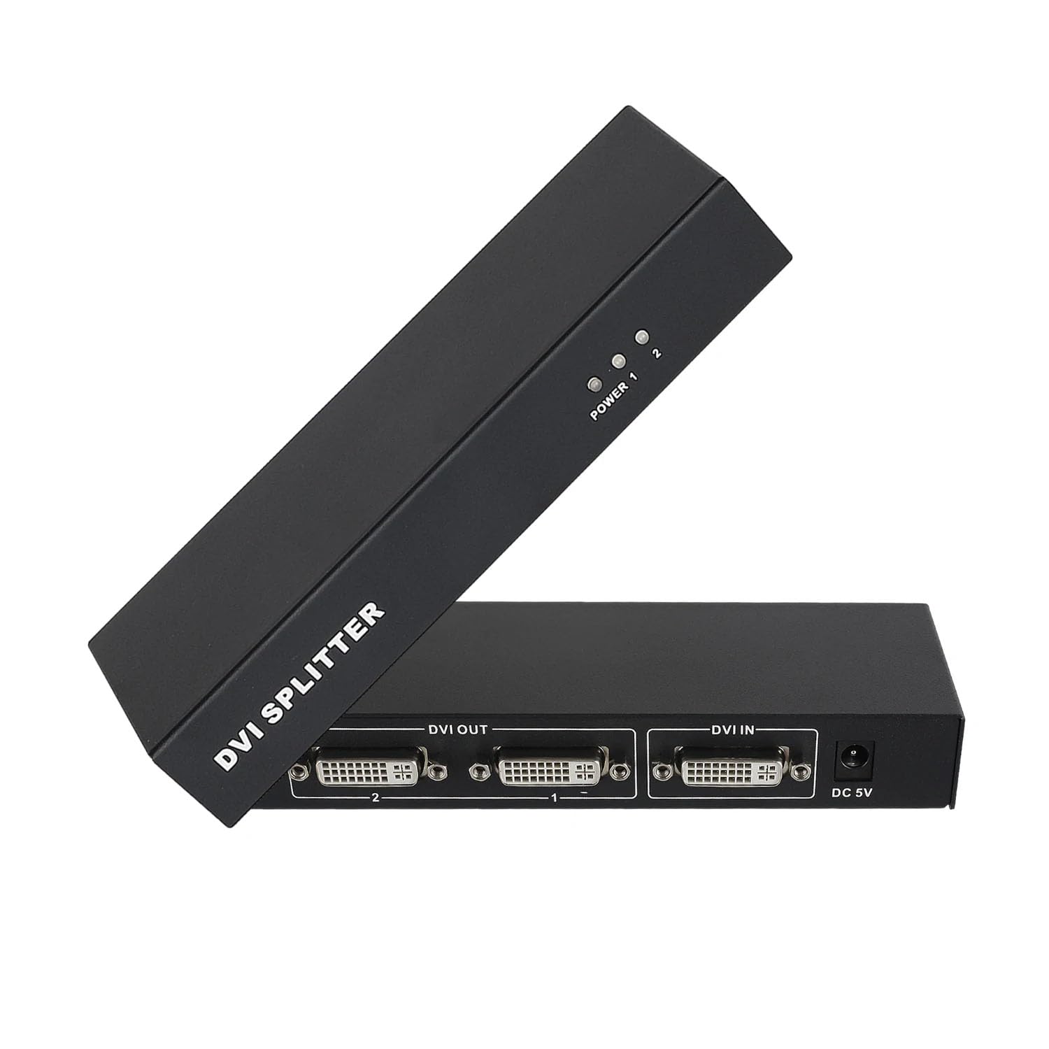 –DVI Splitter 1 in 2 out–Distribute one DVI-D video signal to two DVI-D monitors, the two monitors display the same picture. 1x DVI input and 2x DVI output