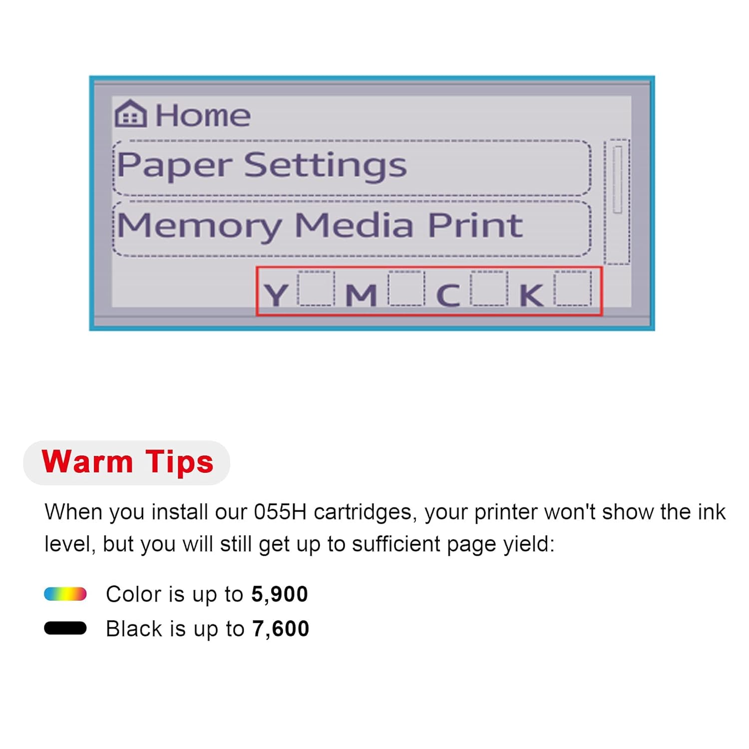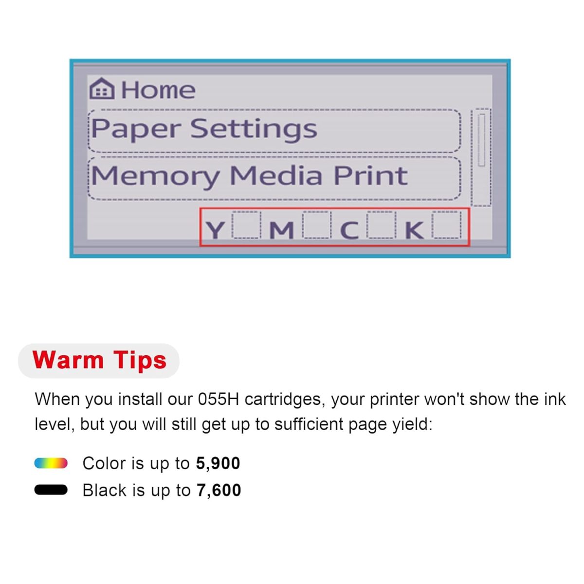High Page Yield: 2,300 pages per black cartridge for Canon 055 055H toner cartridge, 2,100 pages per color cartridge for Canon 055 toner cartridge, at 5 percent coverage of A4 paper