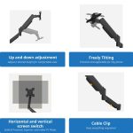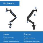 Single Monitor Gas Spring Desk Mount: Our heavy-duty monitor arm is equipped with a gas spring mechanism to ensure seamless adjustments. This steel stand is compatible with a variety of monitors, including ultrawide and curved displays, making it an ideal choice for workspaces.