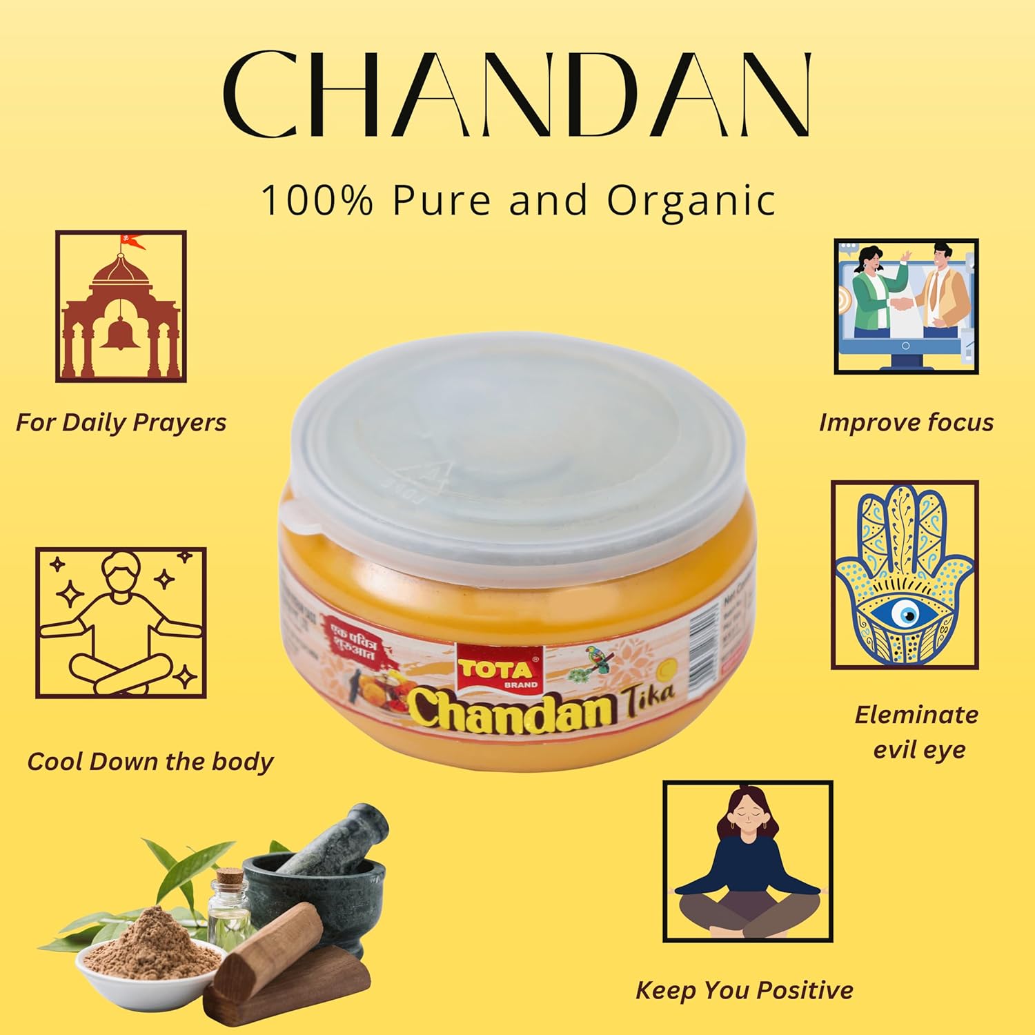 Ready-to-Use : This Chandan Tika comes in a convenient paste form, making it effortless to apply directly without the need for any preparation. Unlike Chandan powder, which requires grinding or mixing with water, this ready-to-use paste saves you time and effort, allowing you to simply open the container and apply it instantl