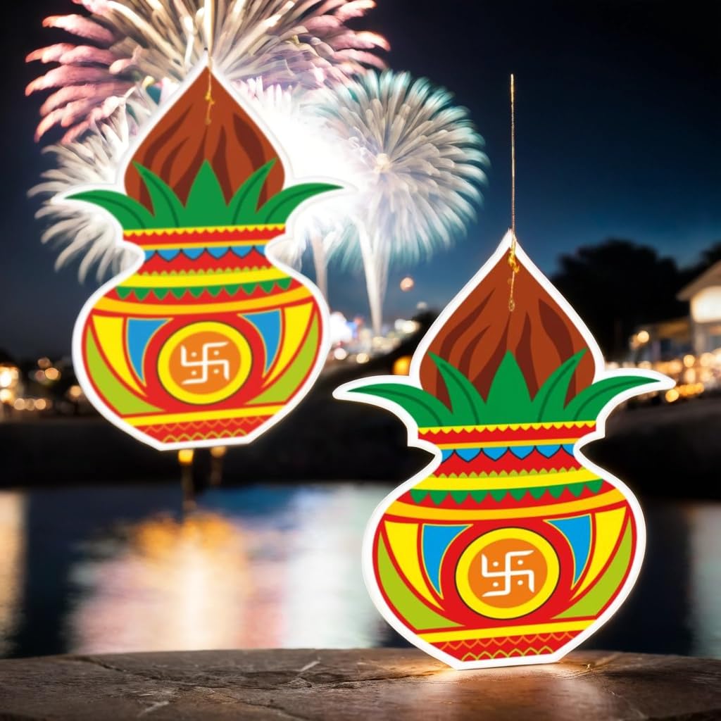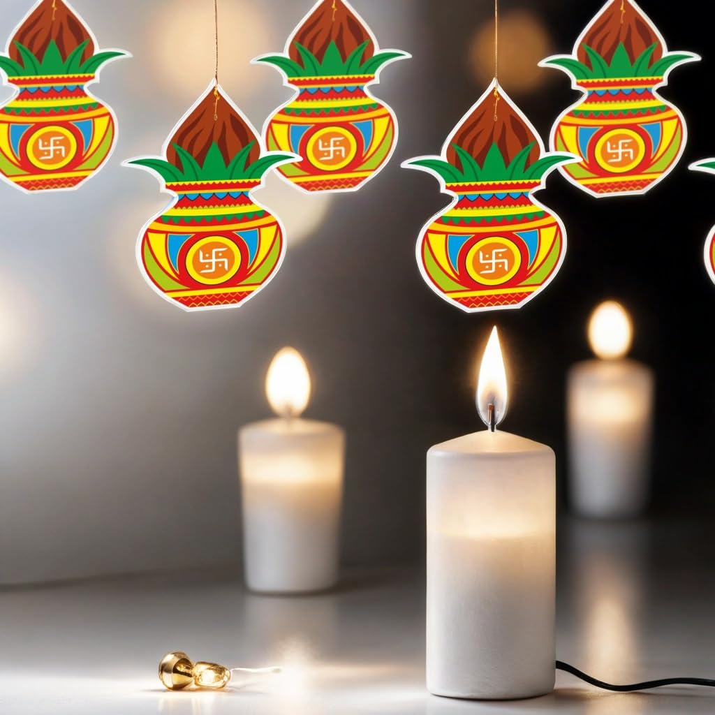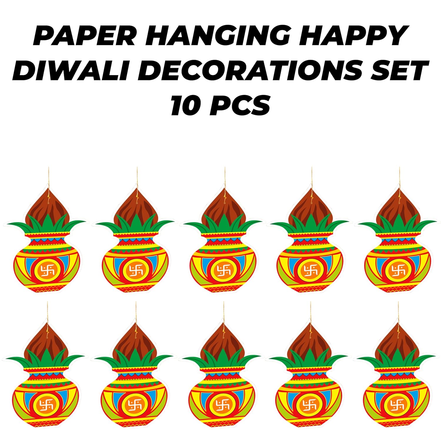 Symbolic Décor: TOTXE Happy Diwali Printed Kalash Shape Hanging Paper Cards feature the sacred and auspicious Kalash designs, symbolizing blessings and prosperity.