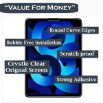 Customers find the screen protector excellent in quality, easy to install, and appreciate its perfect fit. Moreover, the product offers good value for money and works well with iPad Air 4th gen. However, durability receives mixed feedback – while some say it provides tough protection, others report it breaking within 5 days. Additionally, bubble size and glare resistance are also mixed aspects, with some customers reporting no bubbles while others mention lots of bubbles, and the protector makes the screen more reflective rather than anti-glare.