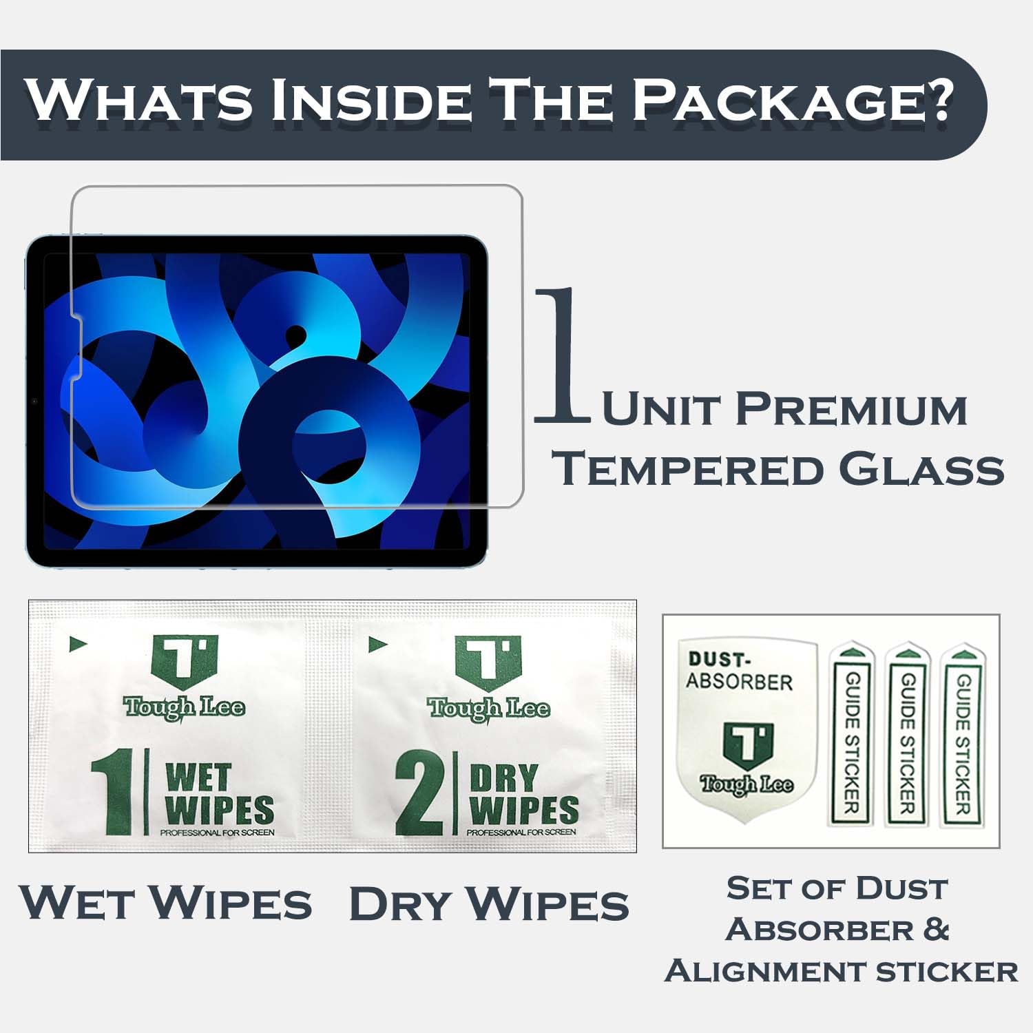 (Included Components): – 1 Unit of iPAD Gorilla Glass, 1 Alignment Sticker and 1 Dry & Wet Wipes