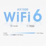 Faster Connections — Wi-Fi 6 speeds up to 1,500 Mbps—1,201 Mbps on 5 GHz and 300 Mbps on 2.4 GHz.