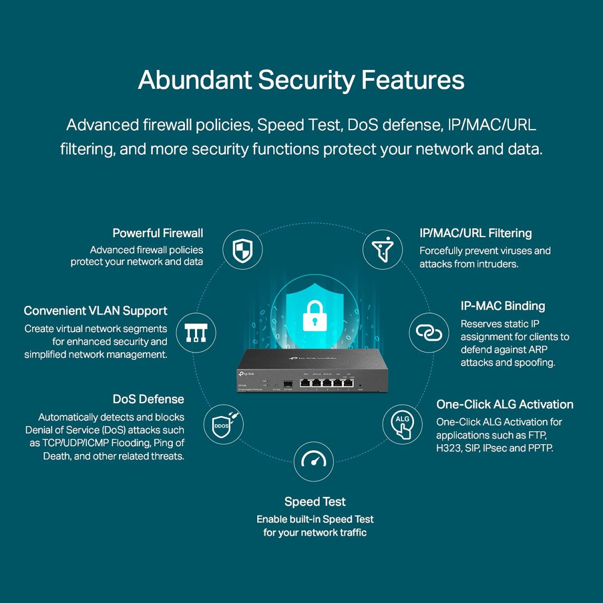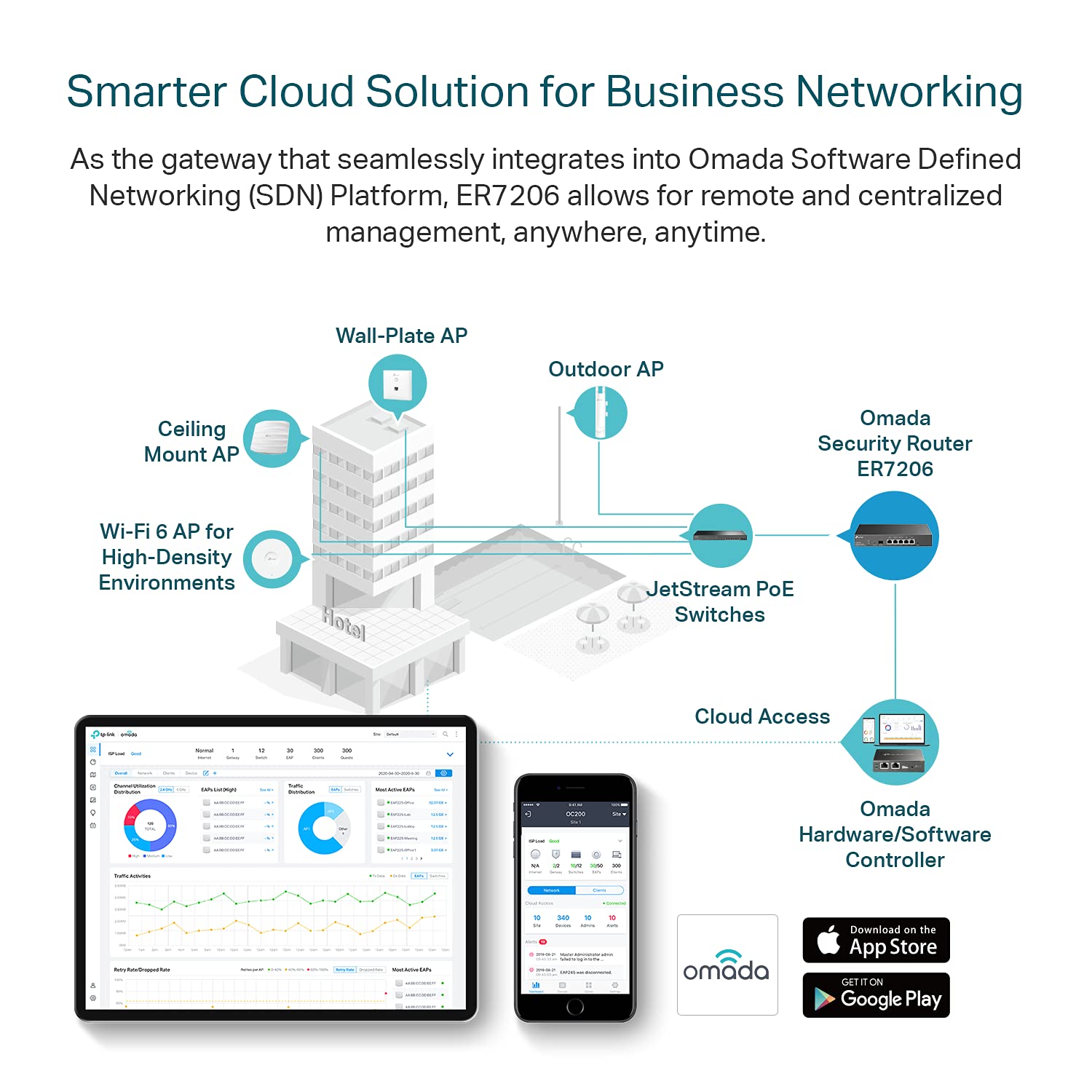 Multi-WAN High-Performance VPN Router with Omada SDN and Increased Network Capacity.