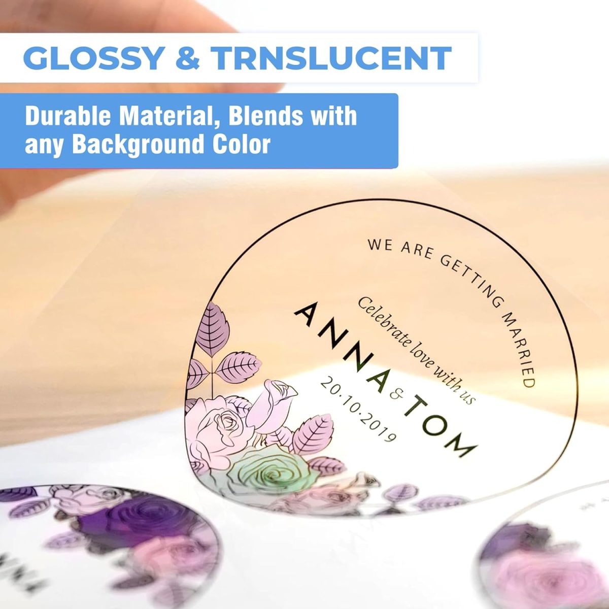 Glossy Finish: Transparent clear sticker photo paper with a glossy finish for vibrant prints.