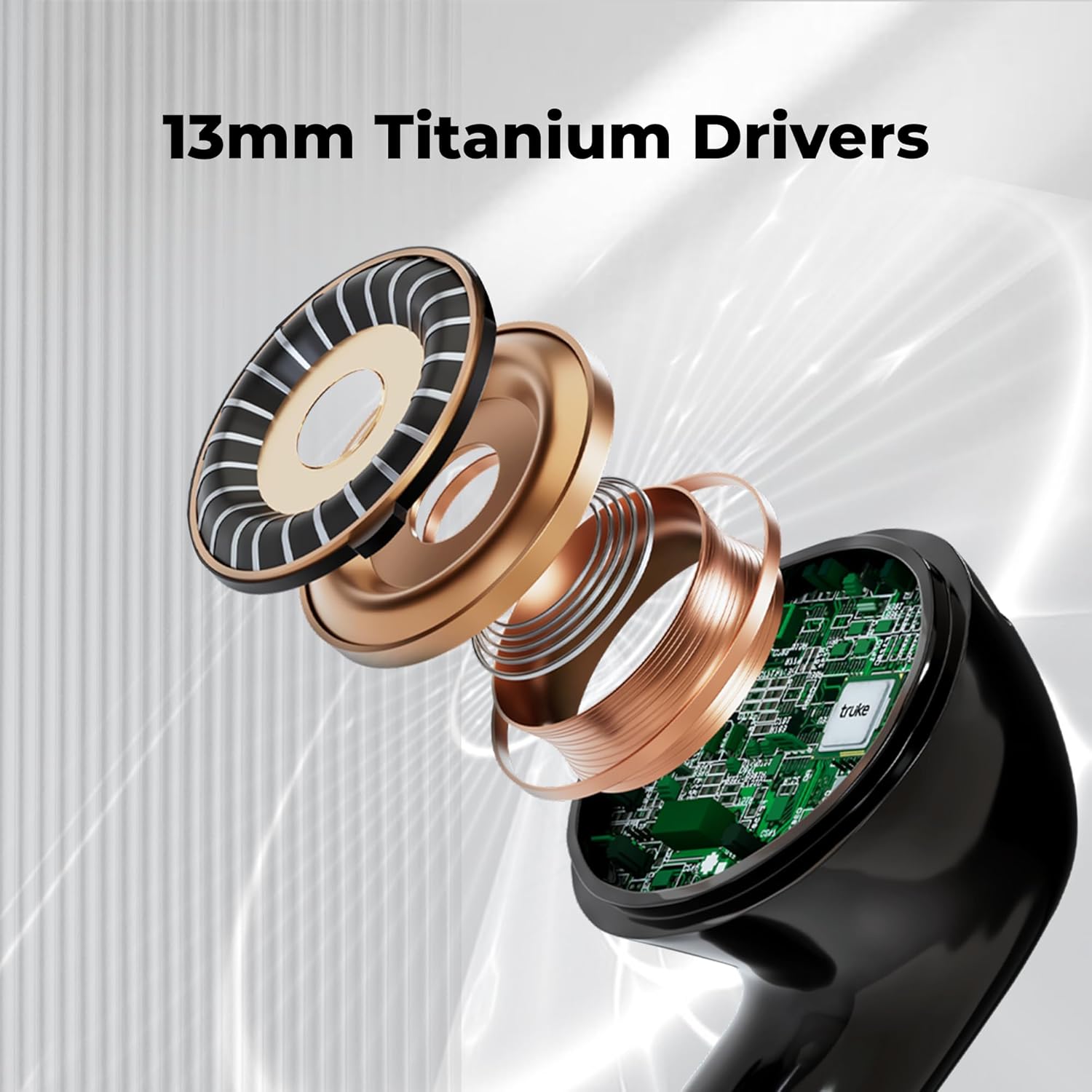 🔊 13mm Titanium Drivers – Delivering deep bass, crisp mids, and sharp highs for an enhanced and balanced sound signature.