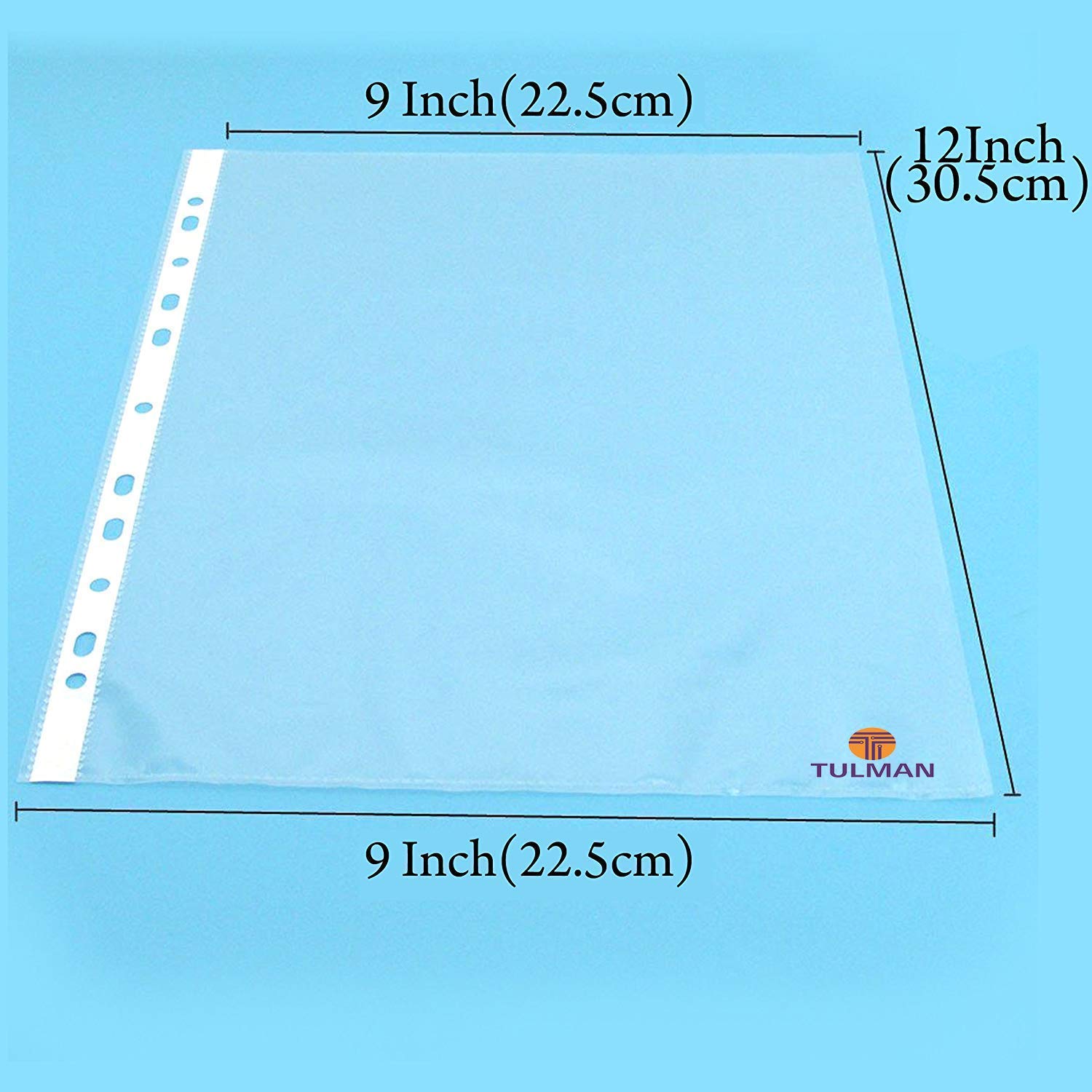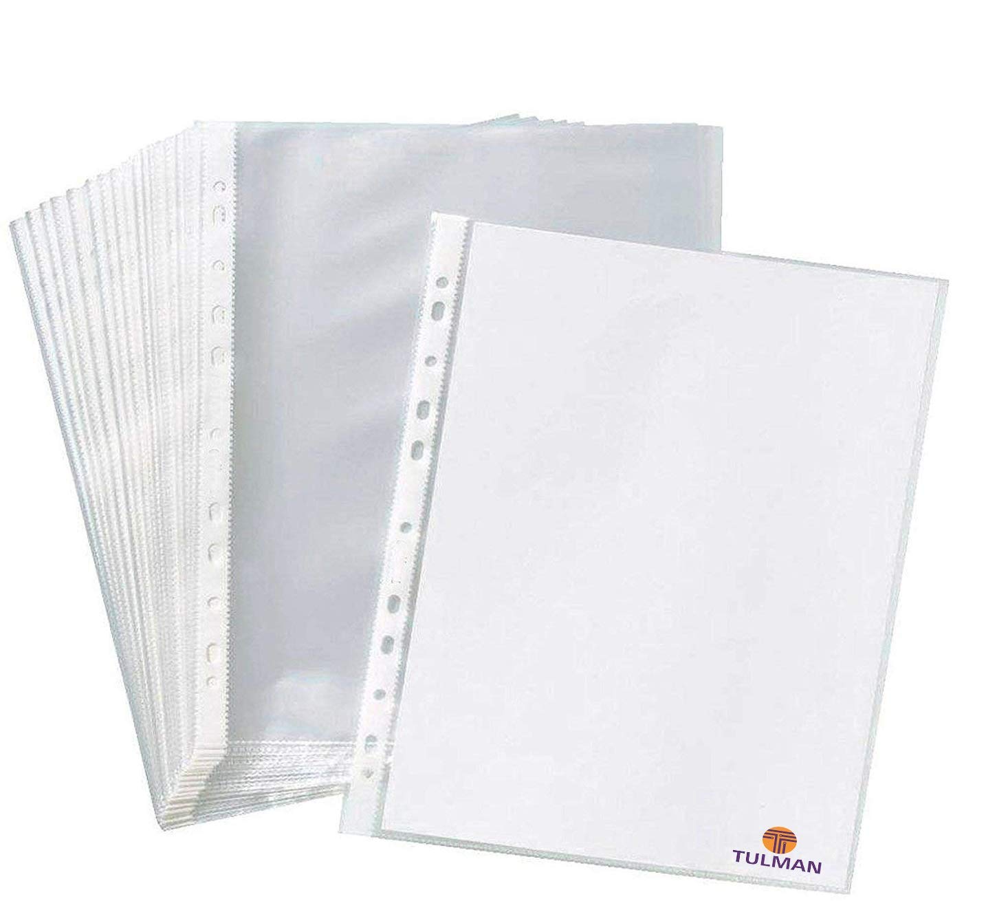 TULMAN A4 Size Transparent Document Sleeves, 100 Pcs, Heavy Duty Clear Sheet Protectors, 150 Microns, Plastic Leaf, Waterproof, 11-Hole Punched for Ring Binders & Files, Office & School Use