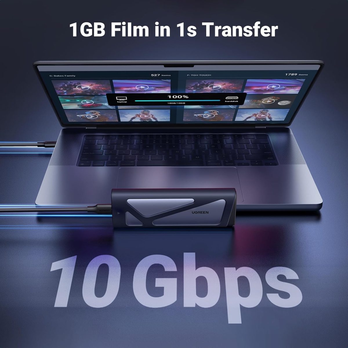 【10Gbps Lightning Fast Transfer】: Compatible with USB 3.2 Gen2, this M.2 NVMe SATA enclosure achieves a transfer speed of 10Gbps, allowing gigabyte files to be transferred in seconds, which is 70% faster.