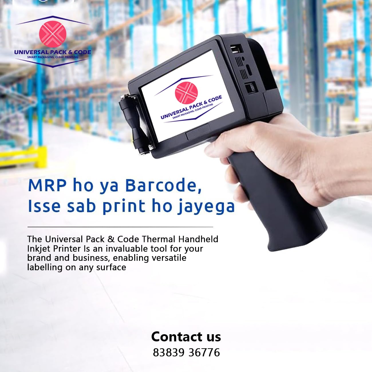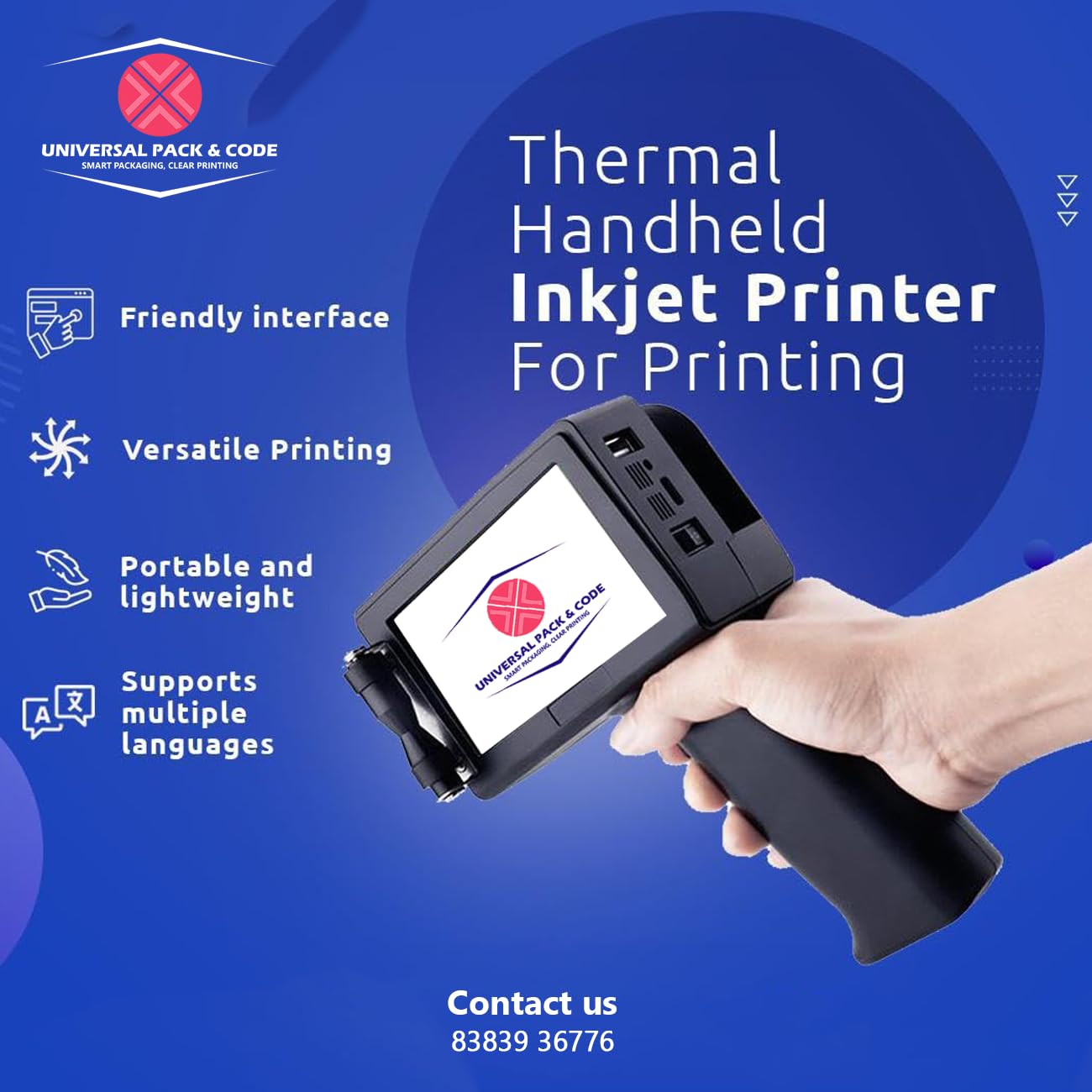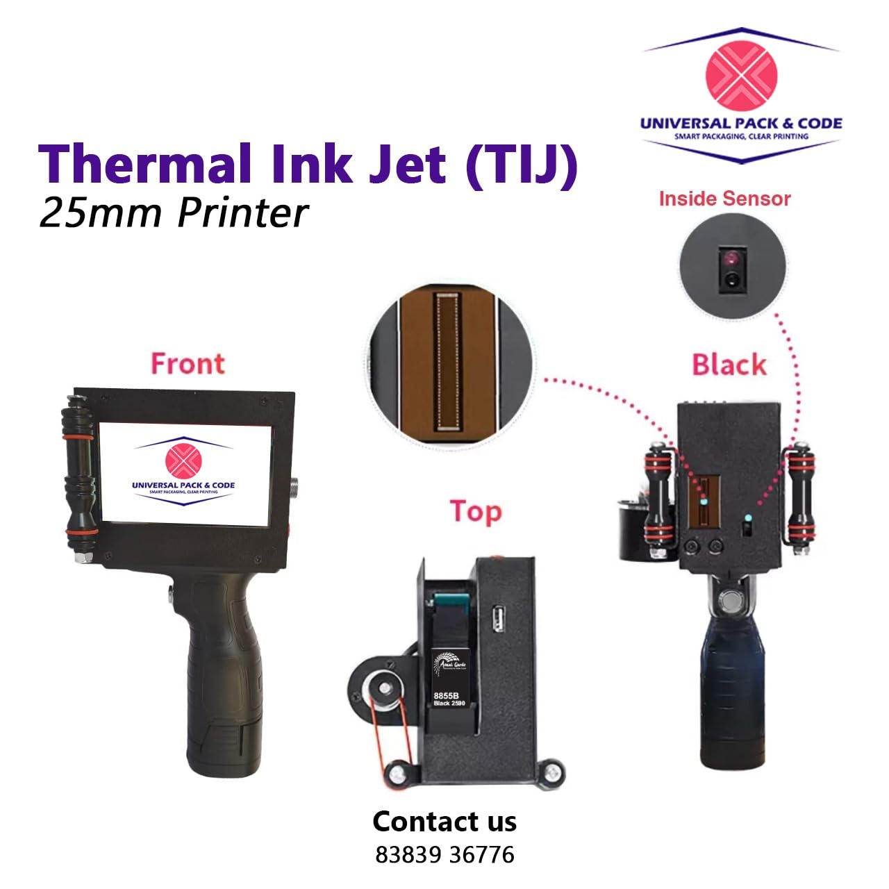 Universal Pack & Code High Resolution Handheld TIJ Inkjet Printer for Printing Logo Expiry Date Printer Machine on Plastic, Wooden, Metal (Black, 12.7mm)