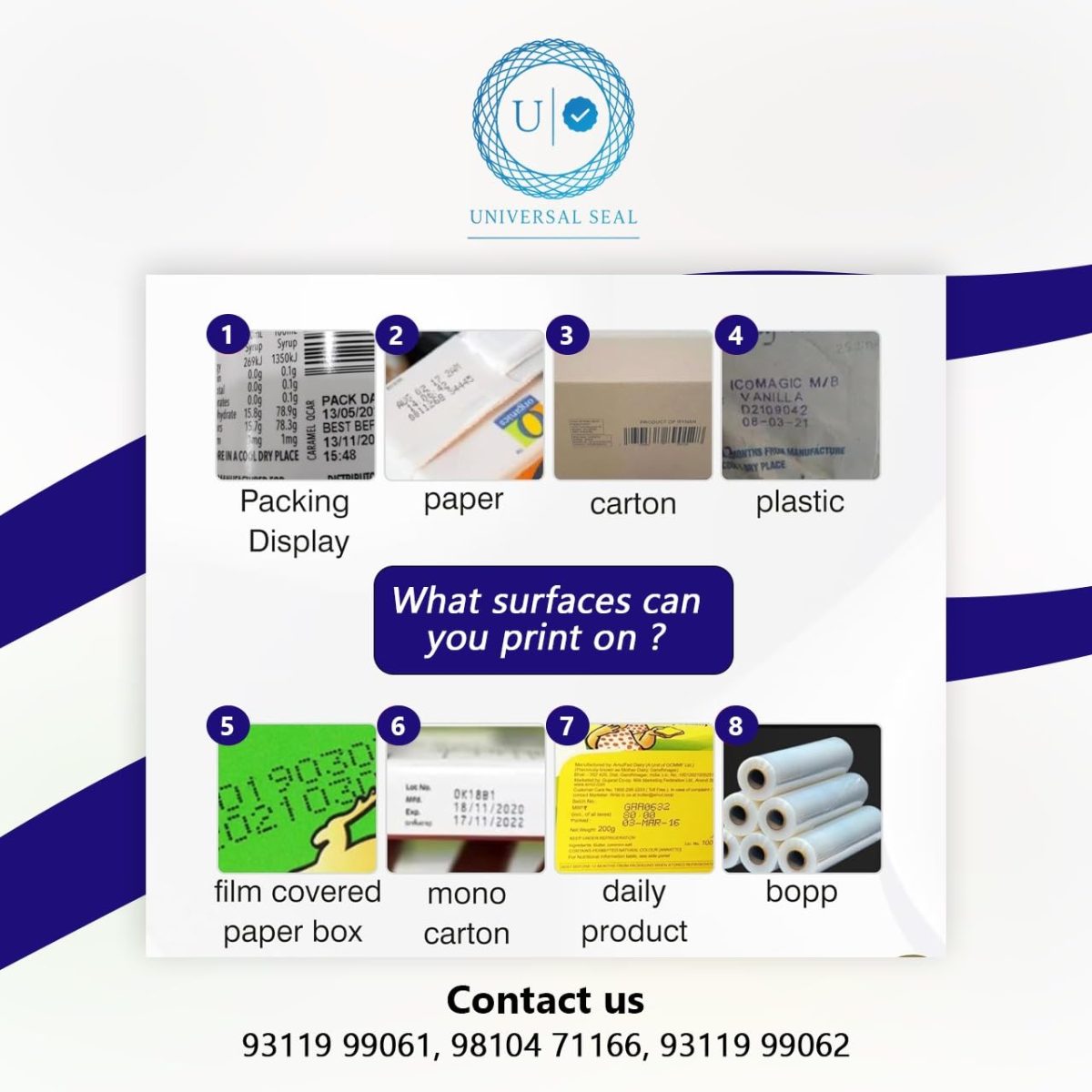 Wide Surface Compatibility – Prints seamlessly on plastic, metal, glass, paper, cardboard, laminated pouches, and more using solvent-based quick-dry ink.