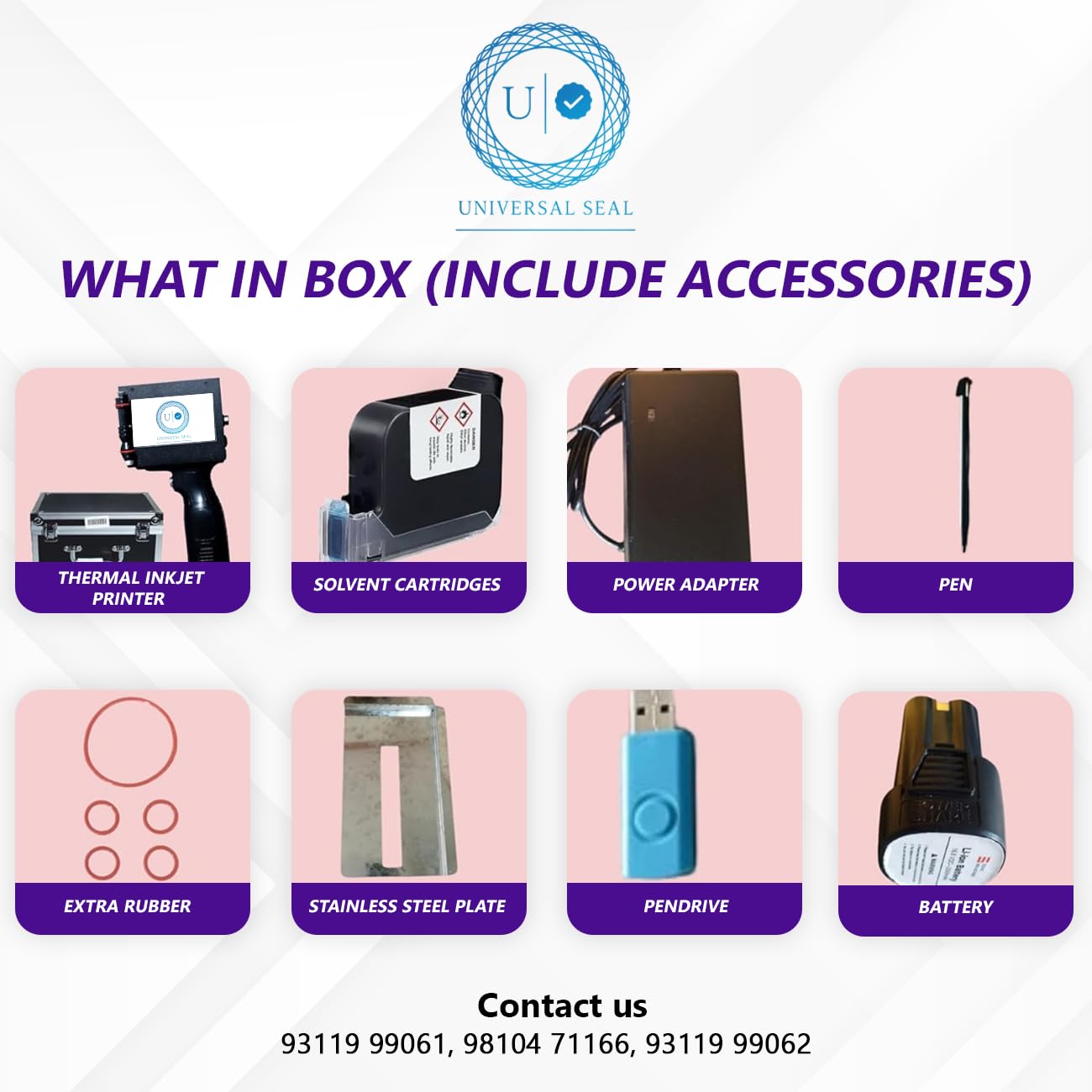 UNIVERSAL SEAL 0.5 Inch Heavy-Duty Handheld Thermal Inkjet Printer | Portable Batch Coding Machine with Solvent Ink Cartridge | Prints Date, MRP, Batch, Barcode & QR Code on Packaging
