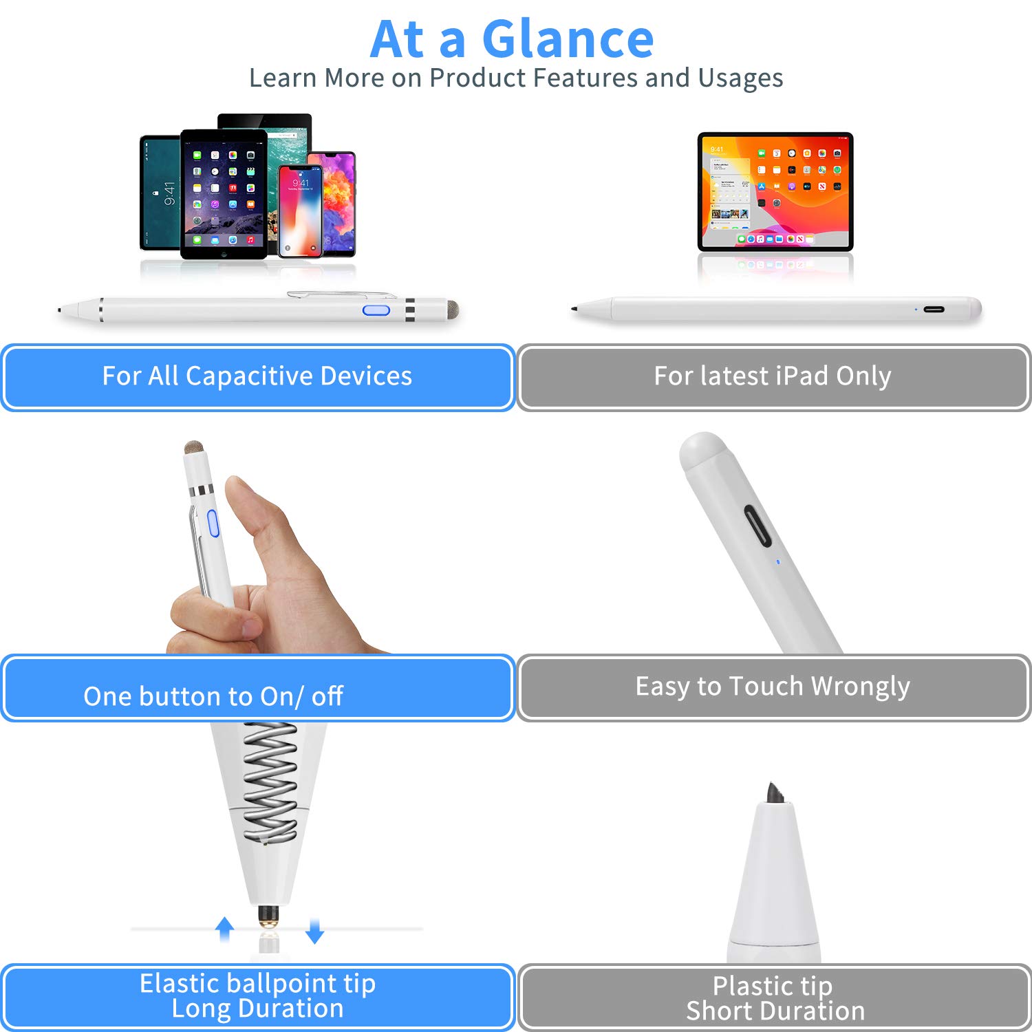 【Upgraded Compatibility】It is compatible with most touchscreen devices, works as Apple pen,iPhone stylus for iPads,iPad Pros, Samsung pen for tablets and cellphones.With a more economic price,you get amost similar functions for Apple Pencil and Android Series Tablets.【IMPORTANT】With our new upgraded technology,this stylus works for iPad series