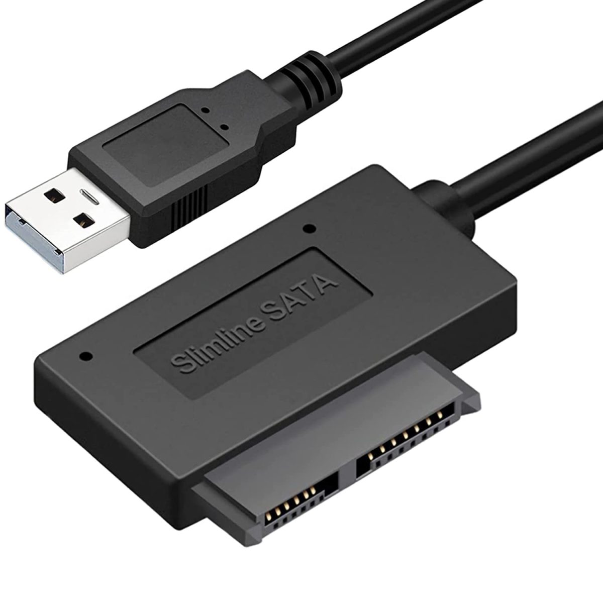 USB 2.0 to 7+6 13Pin Slimline SATA Laptop CD/DVD ROM Optical Drive Adapter – Black 35cm – Plug and Play – Support All Slim-Only SATA Laptop Drive (DVD-ROM, DVD-RW +/-, DVD-RAM etc