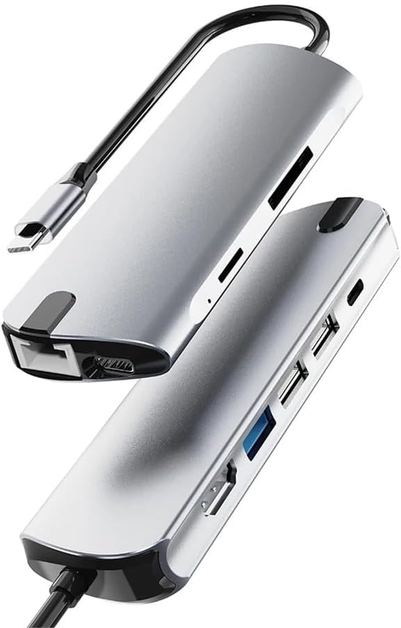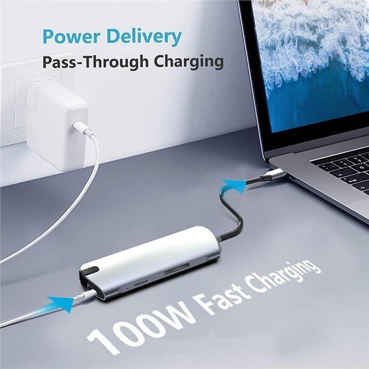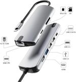USB C HUB, 8in1 USB C Adapter with 4K HDMI, 100W PD, USB C Port, USB 3.0, RJ45 Ethernet, SD/TF Card Reader, Docking Station Compatible with Pro/Air USB C Laptops and Other Type C Devices (1916P)