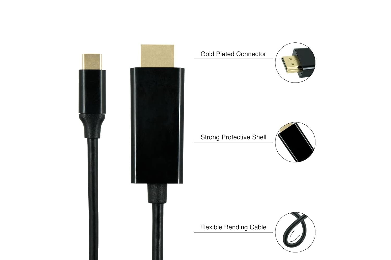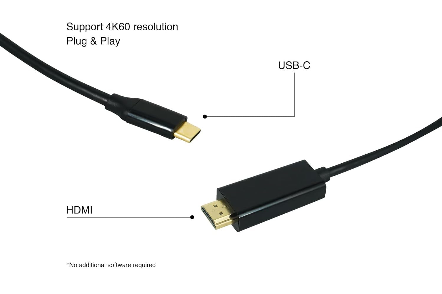USB-C to HDMI cable provides an easy way to connect 4K video content from your phone, laptop, desktop, and tablet to a monitor with HDMI input. Plug and play operation, no driver needed.