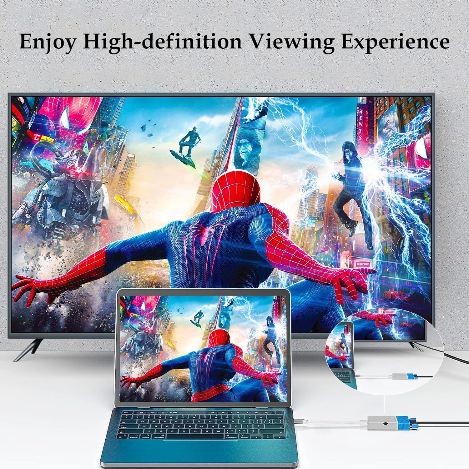 【Durable and not easily damaged】:The aluminum alloy of vga to usbc-c adapter connector protects against corrosion and abrasion, improves messages transmission performance, and increases the durability of the cable.