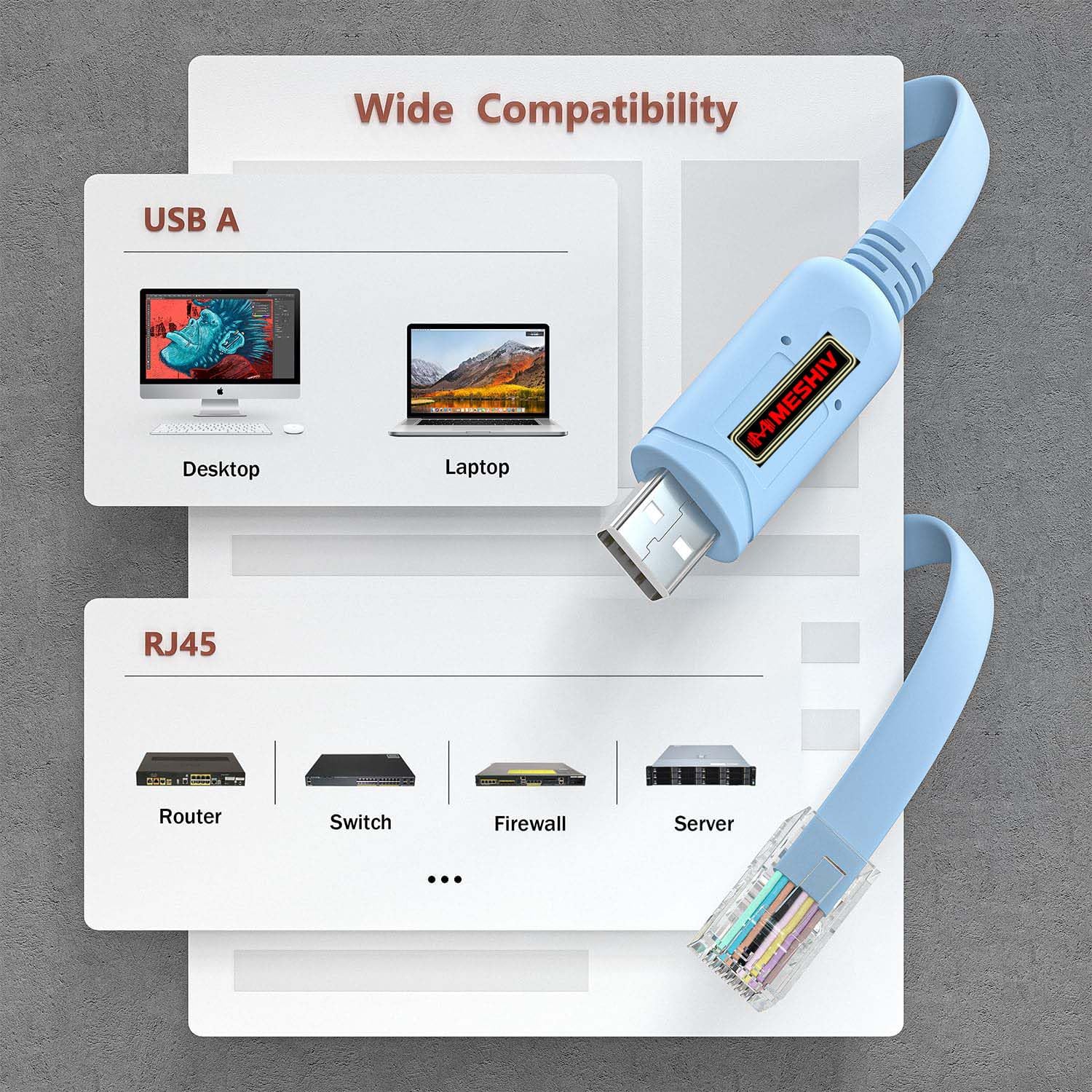 No more DB-9 Adapters needed to get it workingHelp network engineers to solve the computer’s usb port directly connected to console port and rs232 port of switches, routers and other equipmentOur Meshiv console cable has 6ft, 10ft and 12ft for you to choosePlug and play, save more time. Most new systems will automatically install the driver, or select the appropriate driver directly on the FTDI official websiteMeshiv usb to rj45 console cable chooses the most stable and reliable FT232RL serial chip,Compatible with multiple devices, compatible with multiple operating systems,Unparalleled connection stability, no need to worry about data loss