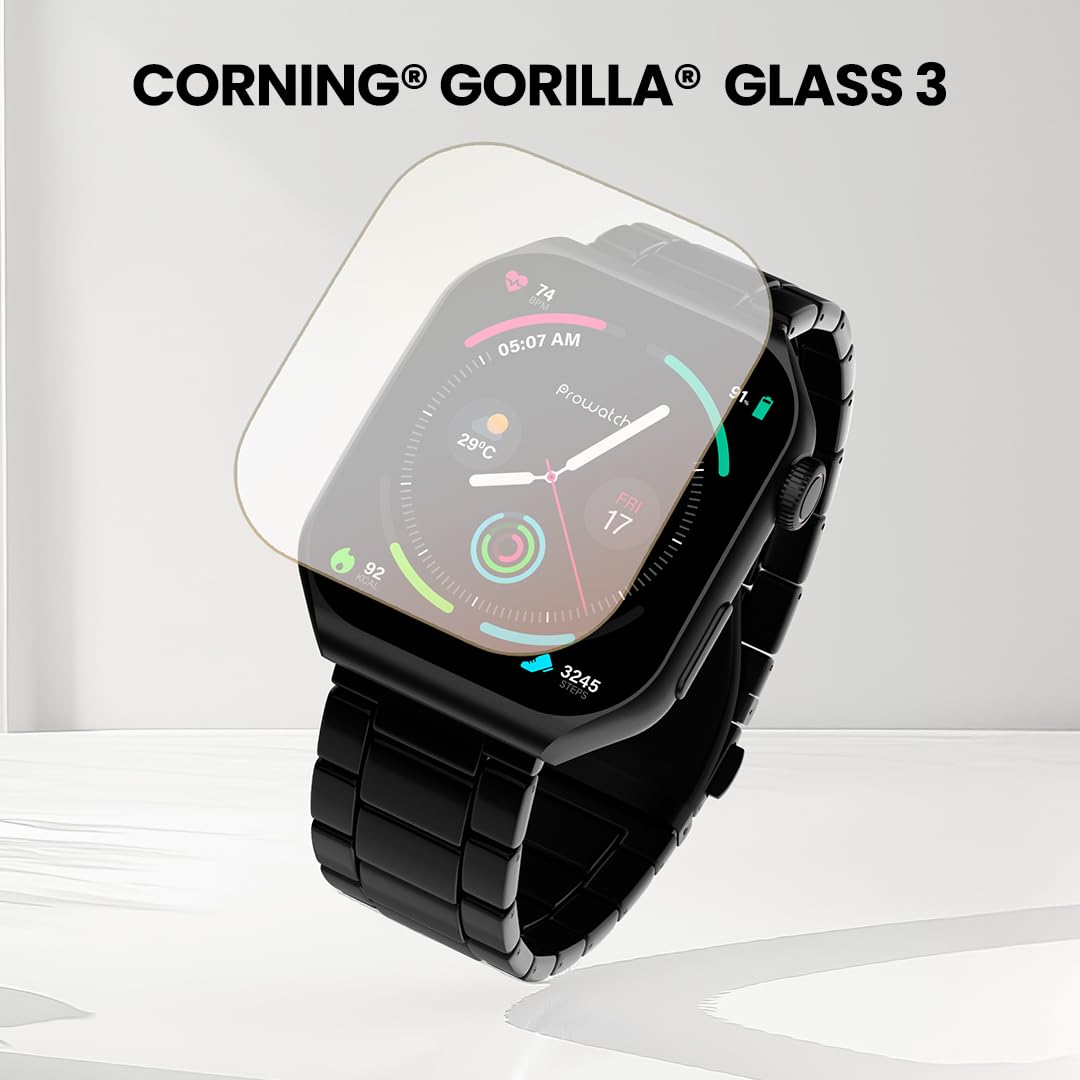 Introducing the Prowatch, Smart Hai Pro: Unbreakable Performance, Unmatched Confidence. Crafted with a premium build, powered by a Realtek high-performance chipset for a seamless experience, and featuring Corning Gorilla Glass 3, a stunning AMOLED display, Bluetooth calling, and true IP68 water resistance, this pro-grade smartwatch boasts a revolutionary 24-month warranty – a first in the segment. Conquer every challenge in style, knowing you’re backed by industry-leading protection. Match your hustle with 110+ sports modes that track your progress, and personalize your look with over 150+ watch faces. The Prowatch is more than a timepiece, it’s an extension of your driven lifestyle.