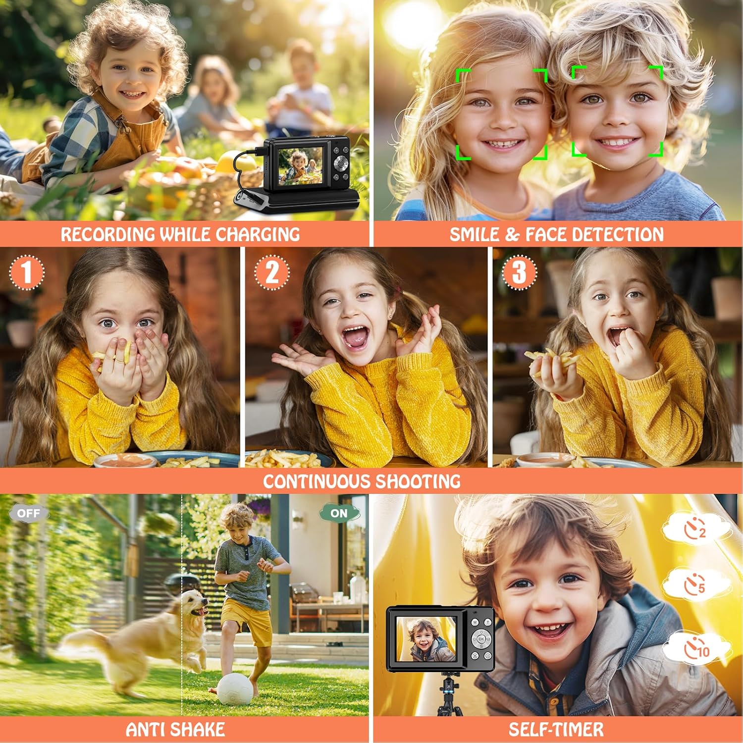【Multifunctional Digital Camera & Easy to Use】This compact digital camera features anti-shake, face detection, smile detection, continuous shooting, timer shutter and timer shutdown. This portable mini compact camera is very lightweight and can be carried anywhere in your pocket, easy to use.