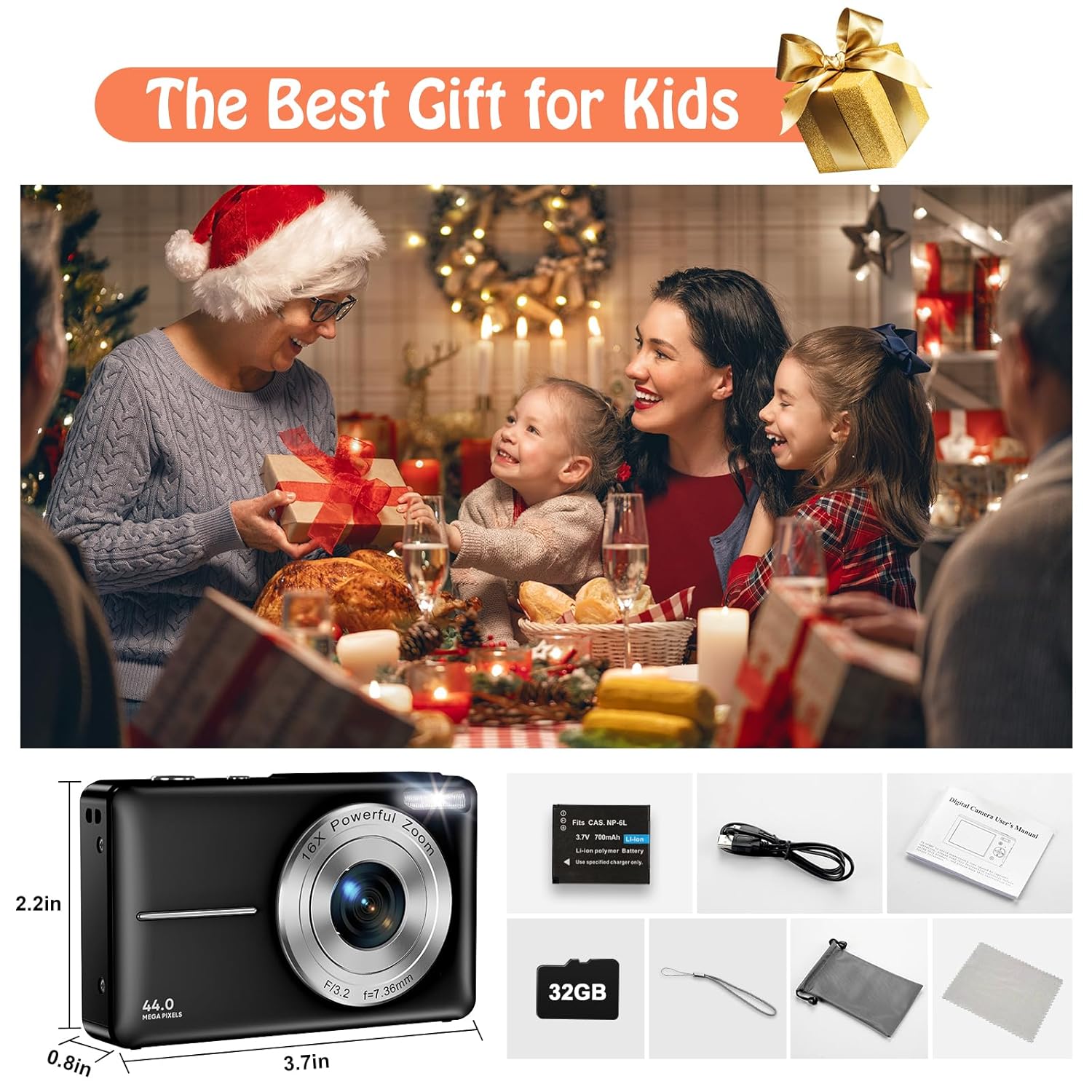 【HD 1080P 44MP Digital Camera】This digital camera with 32GB TF card has 1080P HD image resolution and 44MP video resolution with a built-in microphone and speaker to help you take pictures or HD videos to capture great moments and record unforgettable moments.