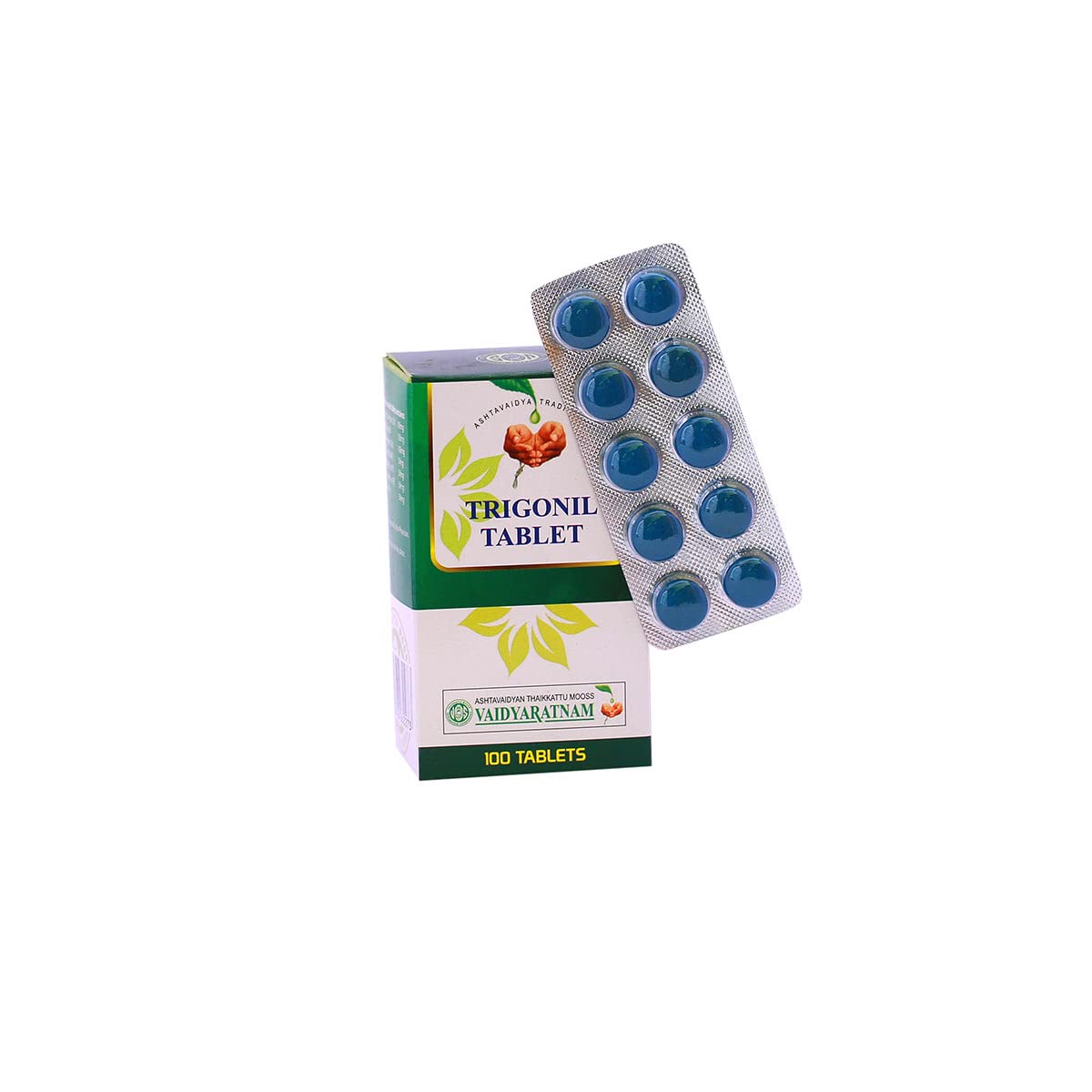 Vaidyaratnam Trigonil tablet is a powerful herbal medication used in Ayurvedic medicine to reduce cholesterol, improve blood supply, increase bio-enhancers, and regulate blood pressure.