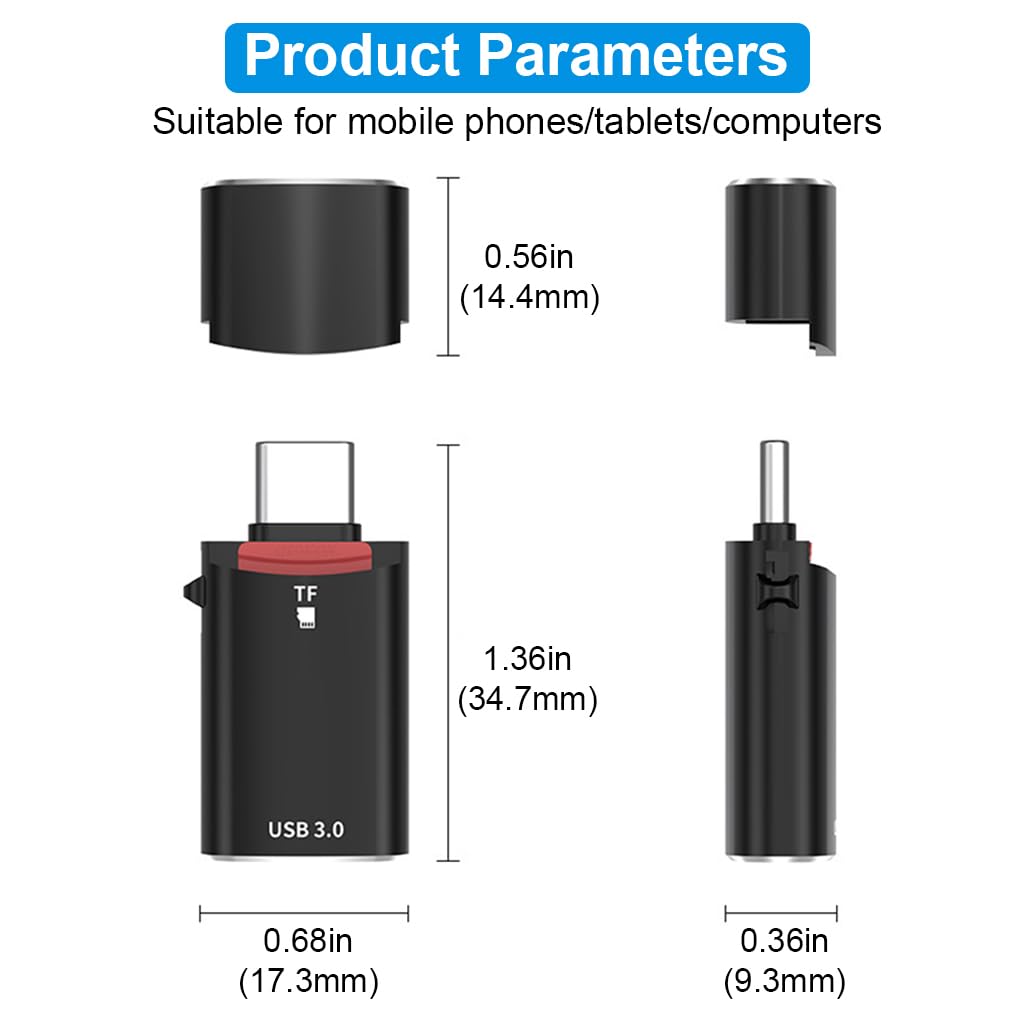 2 IN 1 CARD READER USB: This OTG-enabled micro sd card reader type c combines the function of TF card reader and USB C Male to USB Female adapter, compatible with iPhone 16/15 series, Galaxy S24/S23 series, PC, laptop, macBook, cameras, etc. (NOTE: 1. Please make sure that the OTG function of your mobile phone is turned on when you use it. 2. When using, do not hot-plug and unplug (it will lead to file corruption), please press Eject in the navigation bar before unplugging.)