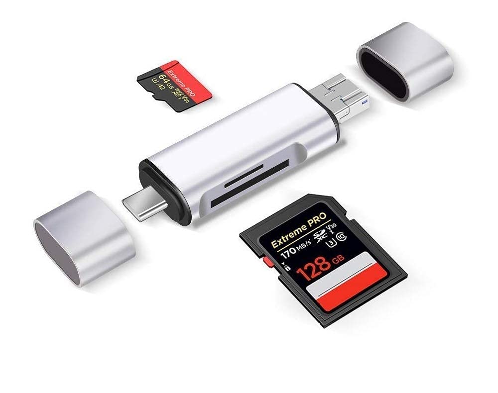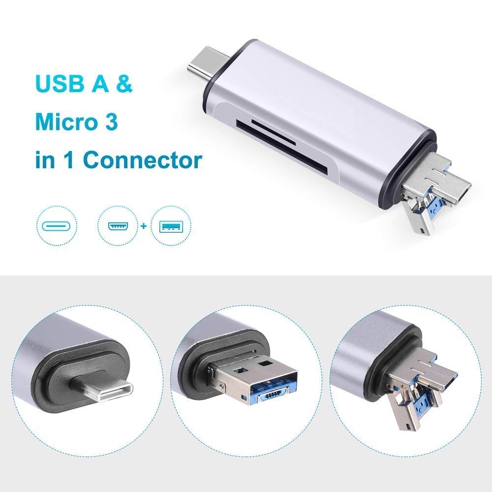 > WIDE COMPATIBILITY — This card reader is compatible with all tablets and Android/USB C smartphones that support OTG function. It comes with a standard USB connector (type A), micro USB plug (type B), and USB C plug (Type C) combination.