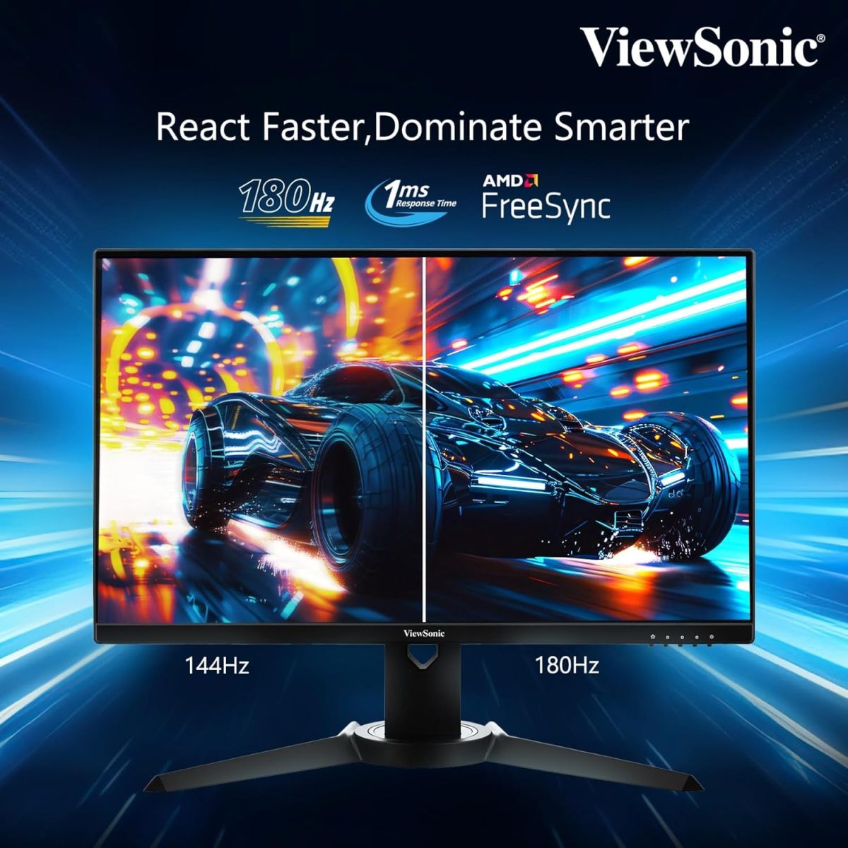 ViewSonic XG2709 60.96 Cm 27 Inch FHD IPS Gaming Monitor with 180Hz, 1Ms, Height Adjustment, AMD Free Sync, Srgb104%, HDR10, Bezelless, Eye Care, Wall Mount, Game Mode, HDMI, DP, VGA.
