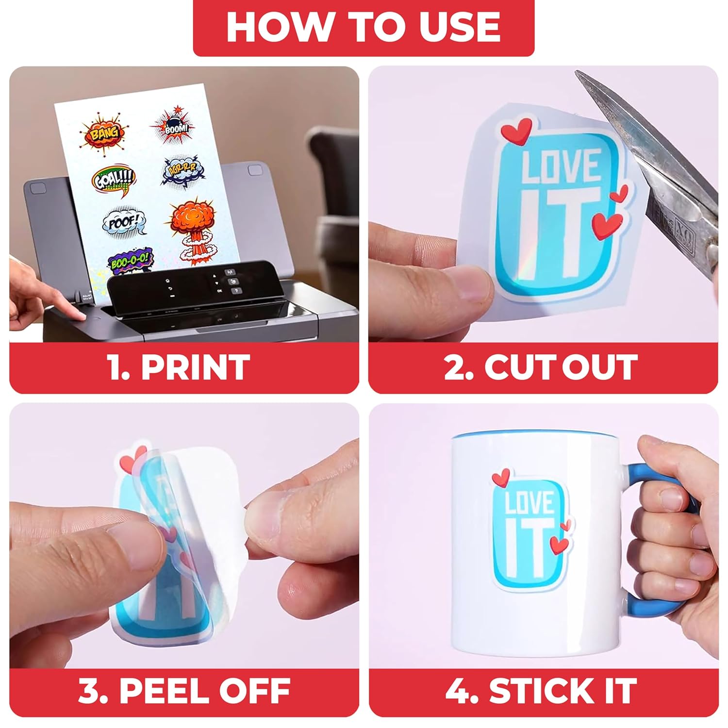 Self-Adhesive Backing: The sticker paper features a self-adhesive backing, enabling easy application on various surfaces.