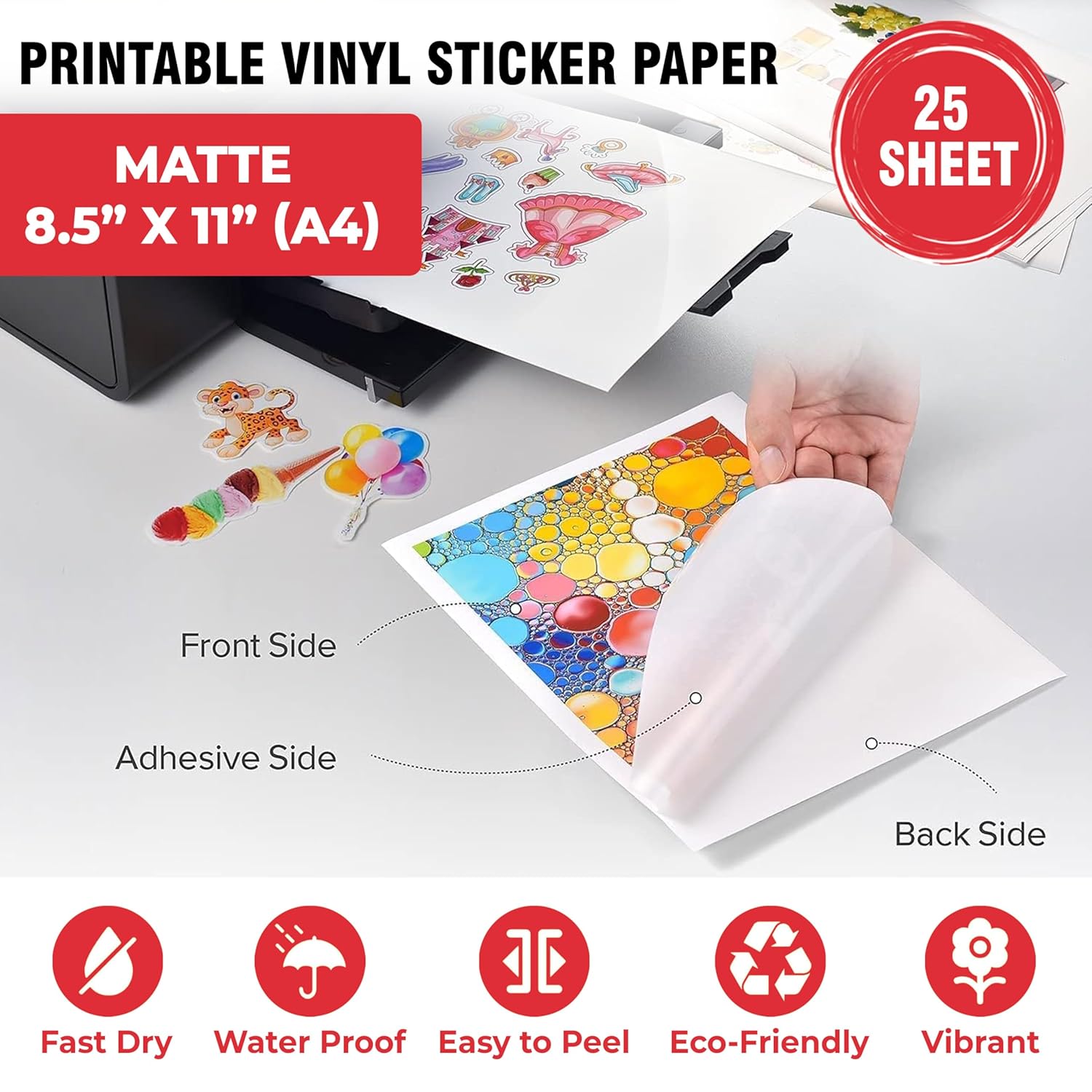 Pack Size: Includes 25 sheets of A4 size sticker paper, providing ample material for your sticker printing needs.