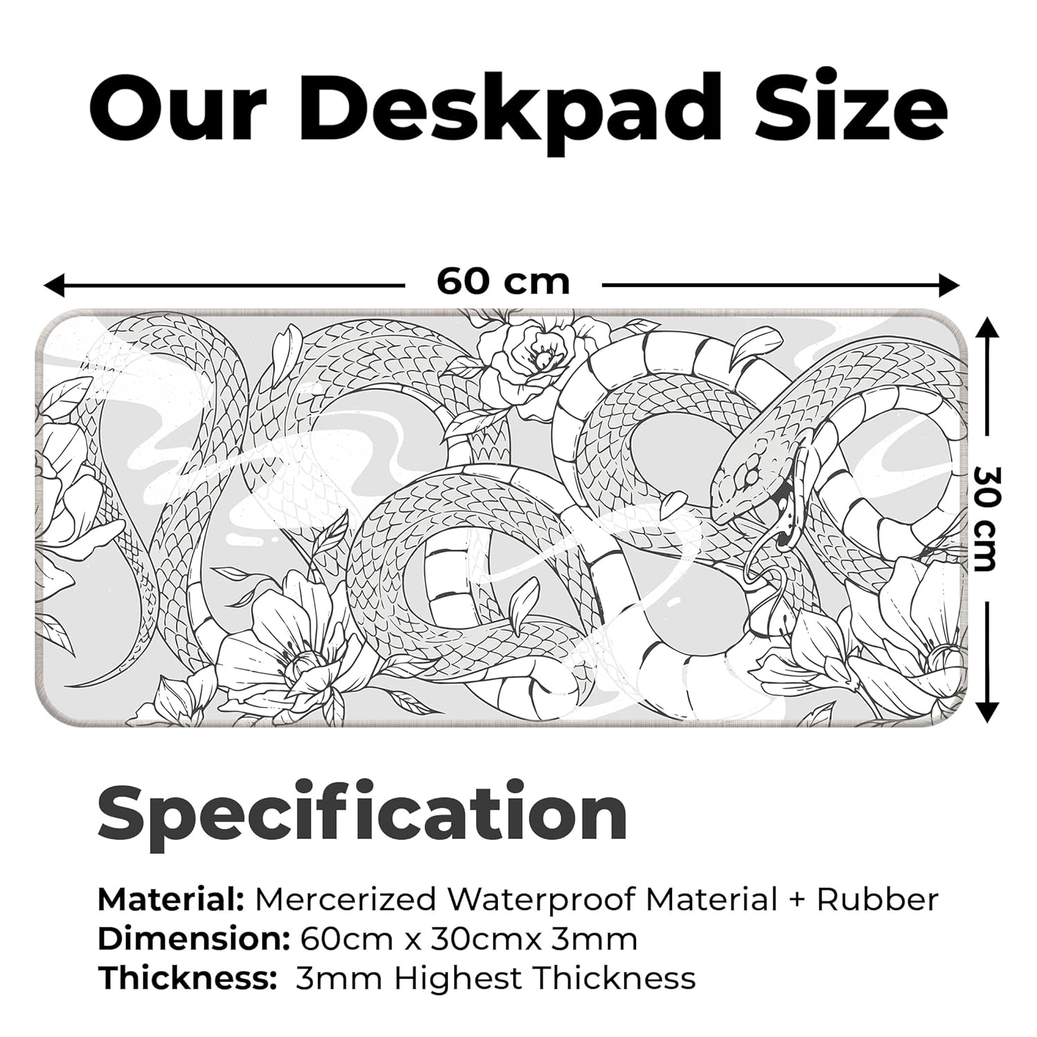 Extended Size: Measuring 60x30CM, the Viper Snake (White) mousepad offers ample space for dynamic motion, making it perfect for both gaming and office use on your desktop or laptop setup.