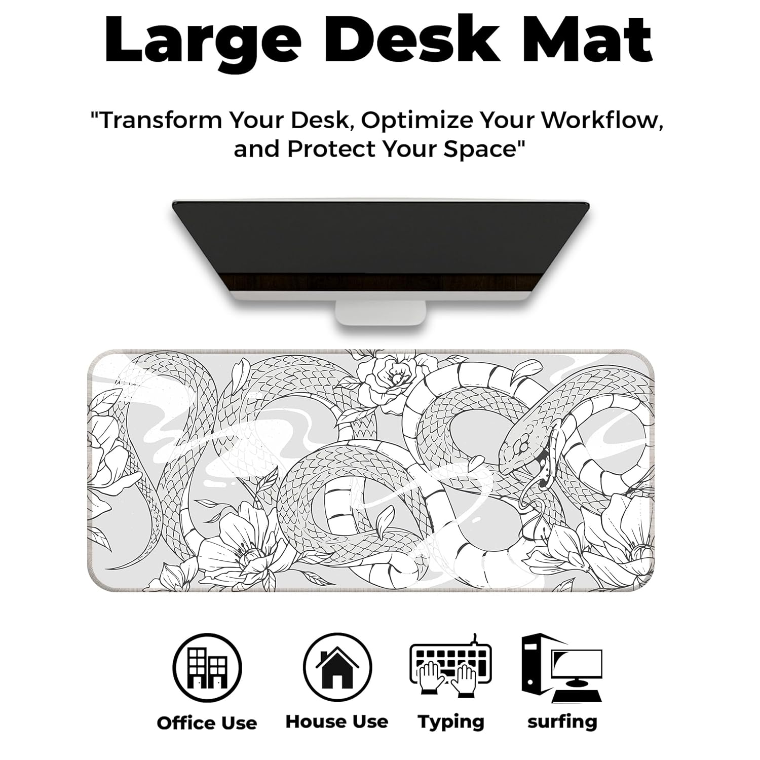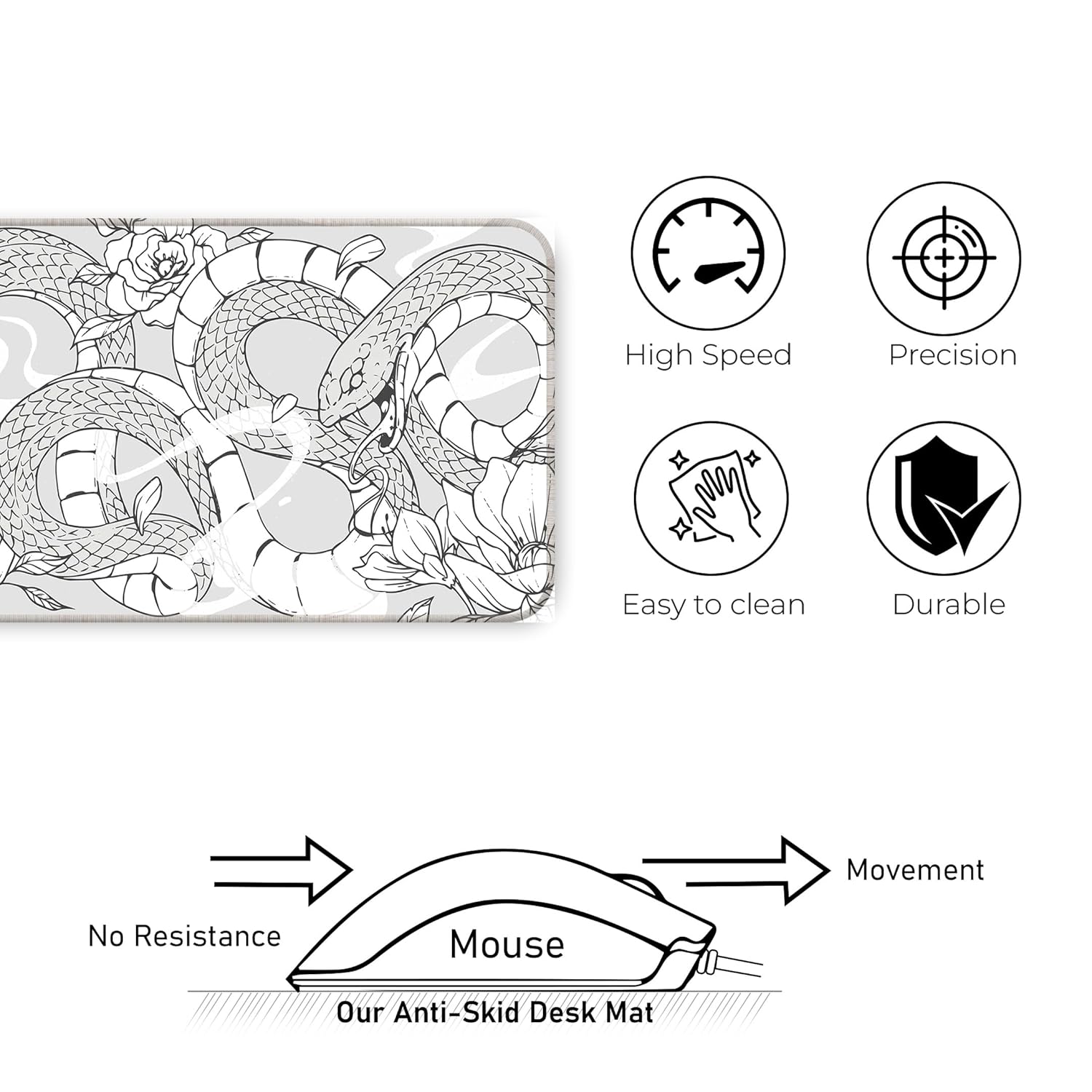Viper Snake White Gaming Mouse Pad – Large 60x30CM Extended Desk Mat for PC, Laptop, Computer Accessories – Dynamic Motion for Office & Desktop Use – Perfect for Gaming & Keyboard Setup