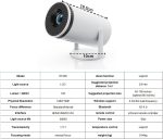 Color: WhiteBare metal weight: 0.53kgNative Resolution: 1280*720PVideo decoding: 4KProjection size: 40-100inchProjection distance: 0.6m-4mBest projection distance: 1.68m