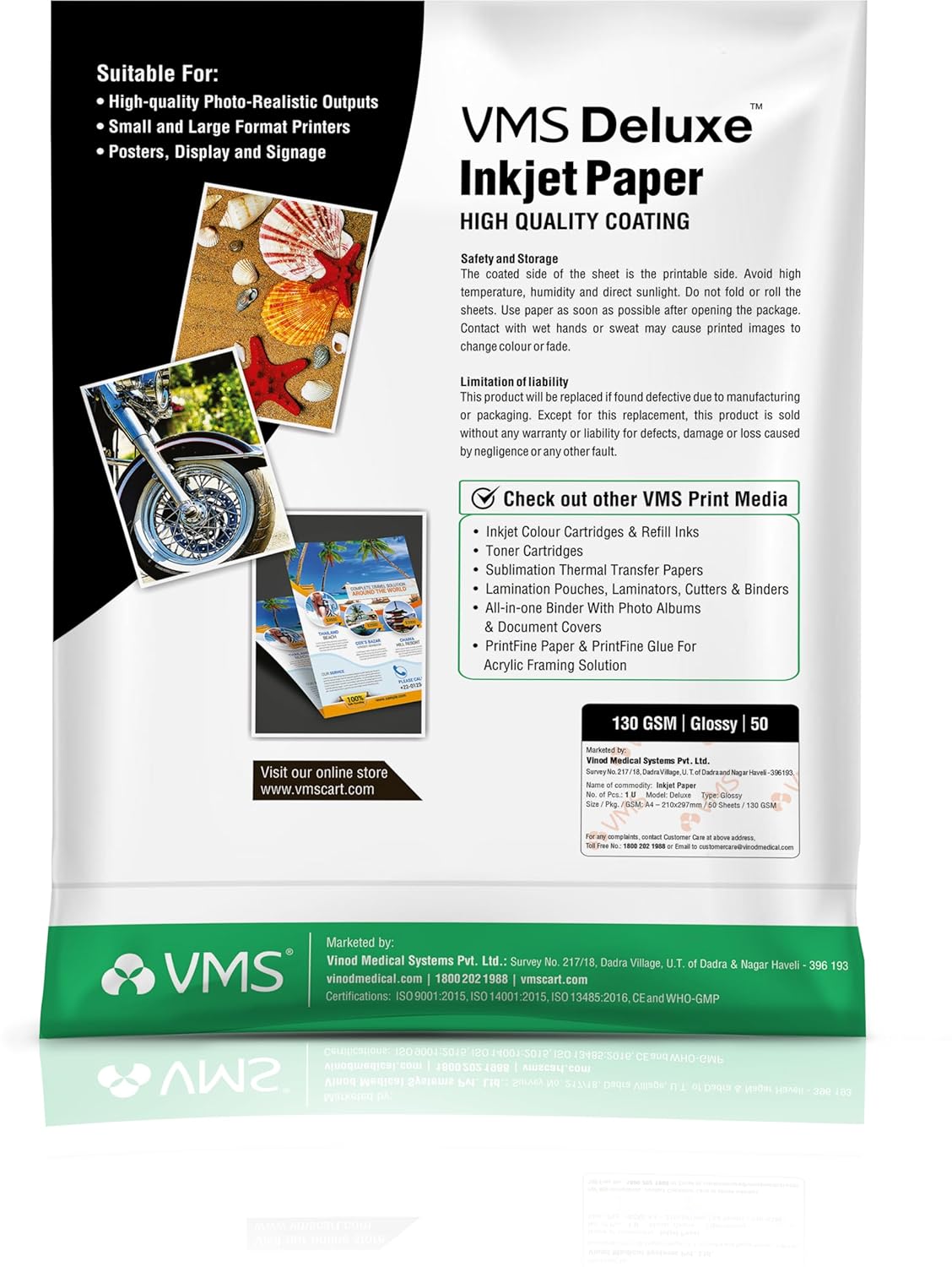 Be the first to review “VMS Deluxe 130 GSM A4 Glossy Photo Paper – Water Resistant, Pack of 50 sheets, Compatible with all Inkjet Printers”