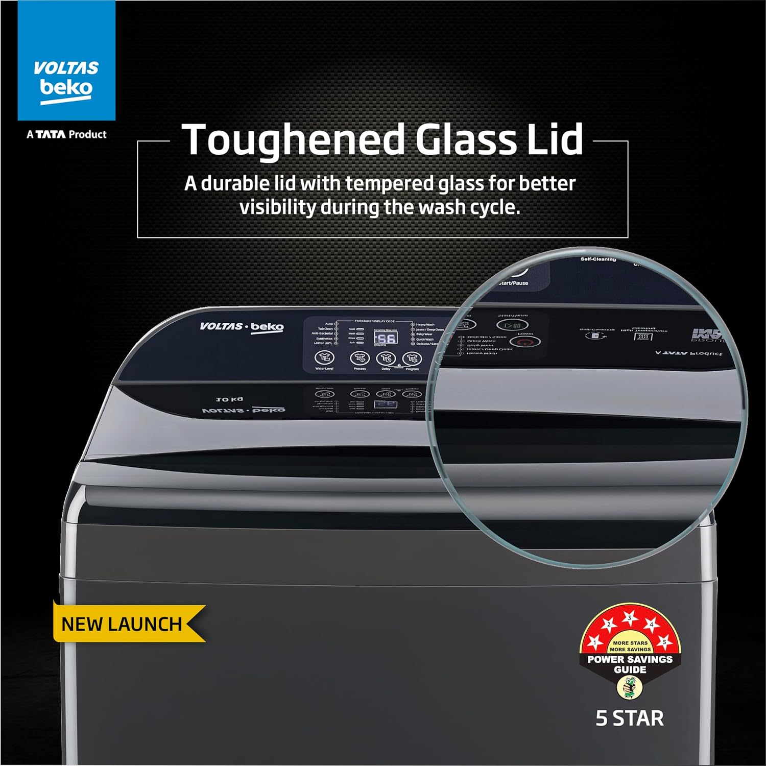 The lid is made of toughened glass, which is strong and durable. It adds a stylish look to the washing machine and can handle daily use. It’s easy to clean and designed to last longer.